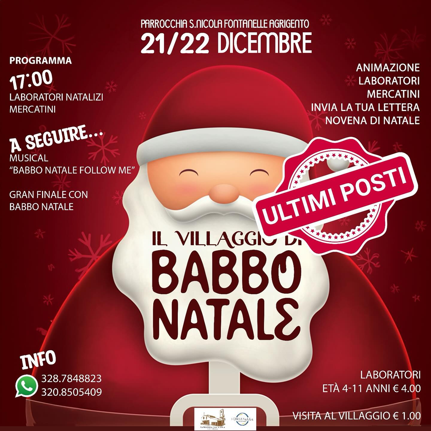 Il Natale arriva ad Agrigento con un evento imperdibile per grandi e piccini. Il 21 e 22 dicembre, la Parrocchia S. Nicola di Fontanelle ospiterà il “Villaggio di Babbo Natale”, un appuntamento ricco di magia e divertimento pensato per le famiglie e finanziato totalmente dal comitato di quartiere “Fontanelle Insieme”.