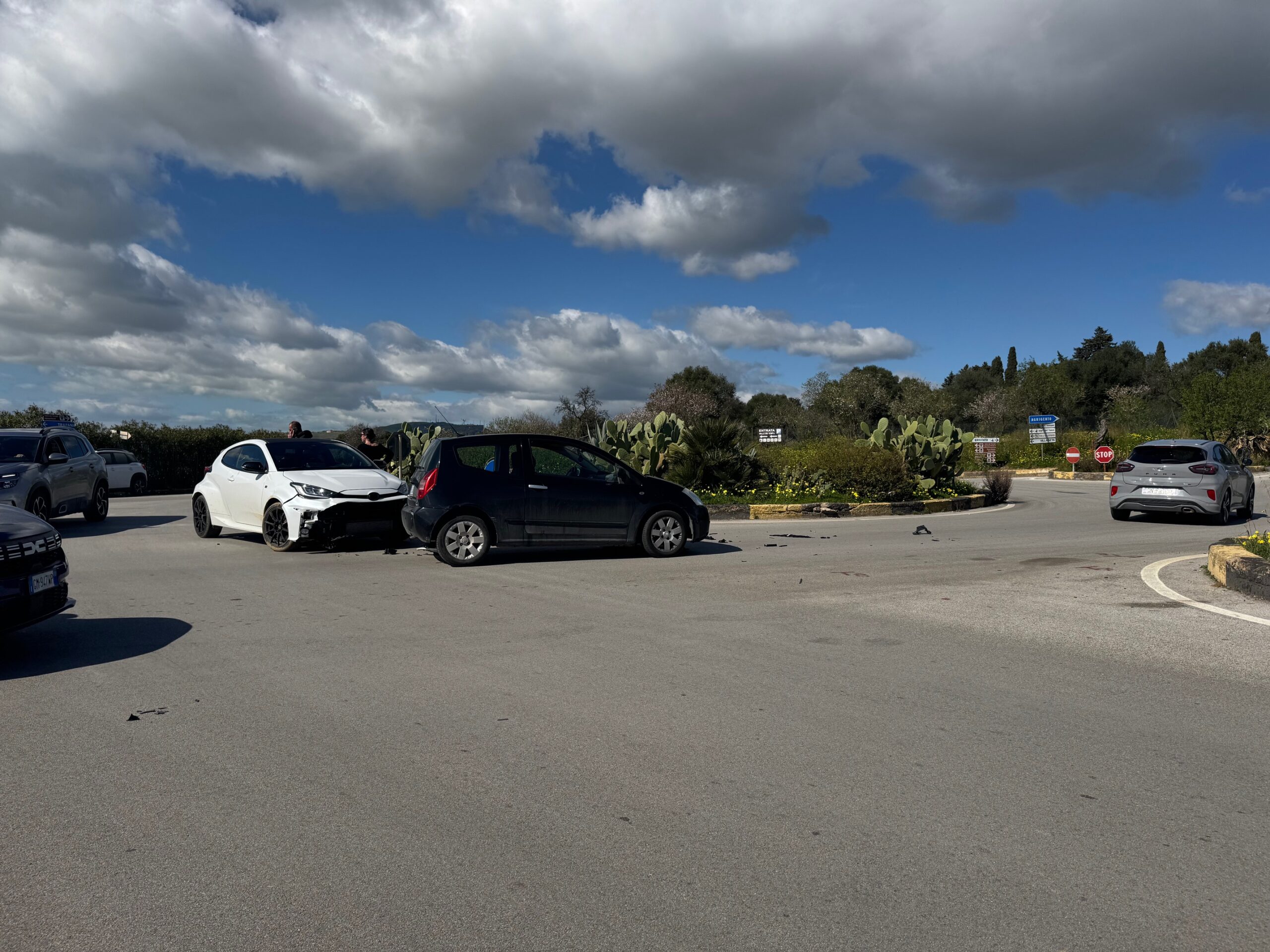 AGRIGENTO – Un nuovo incidente si è verificato nei pressi della rotonda di Porta Aurea, in piena Valle dei Templi. Questa volta, lo scontro ha coinvolto un’autovettura, fortunatamente senza provocare feriti, ma l’episodio riaccende le polemiche sulla sicurezza della viabilità in questo punto critico della città.