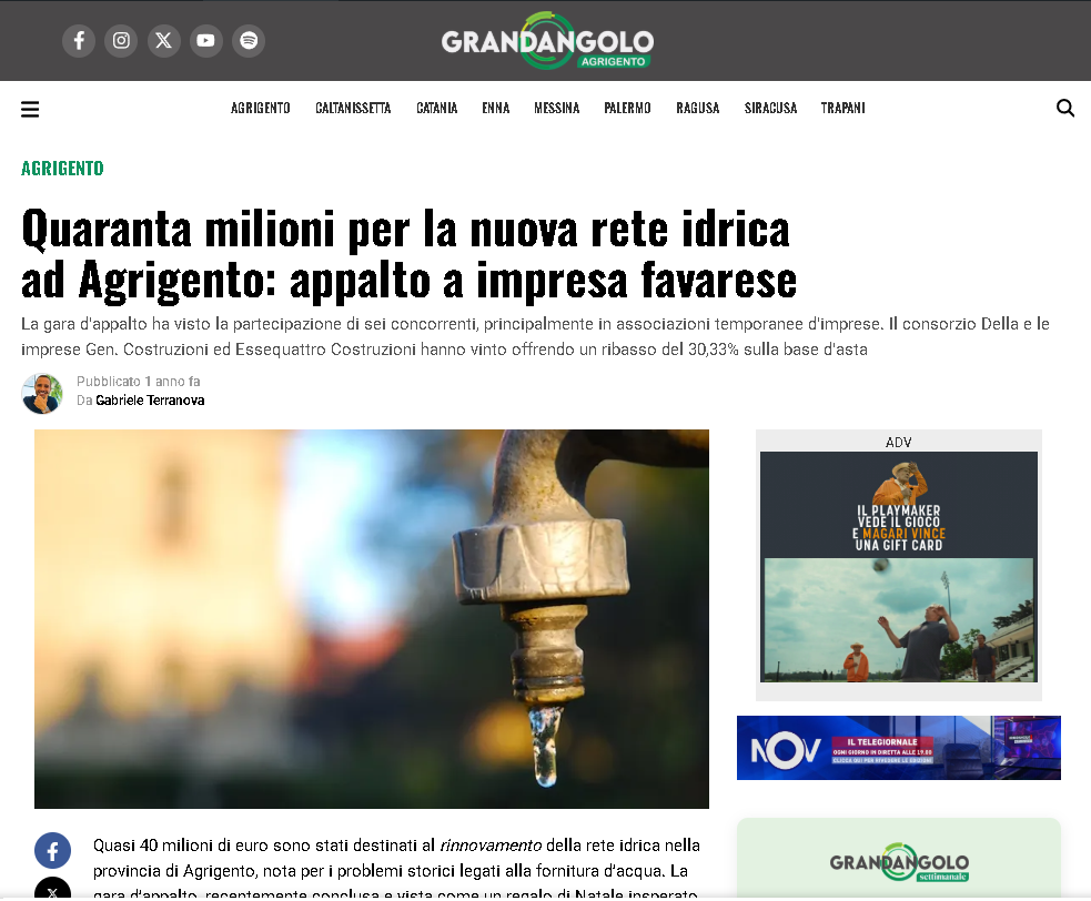 AGRIGENTO – C’è un momento preciso da cui si può far partire la valanga giudiziaria oggi nota come “Appalti e mazzette”: è il 24 dicembre 2023, quando sul giornale online www.grandangoloagrigento.it viene pubblicato un approfondito articolo sull’aggiudicazione dell’appalto da 40 milioni per il rifacimento della rete idrica di Agrigento al consorzio Della, legato alla famiglia Capizzi di Maletto.