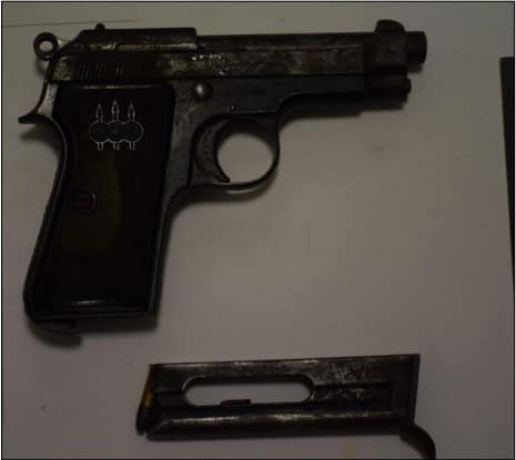 Nella mattinata del 26 luglio u.s., si procedeva pertanto a perquisizione domiciliare che dava esito positivo, in quanto veniva rinvenuta una pistola marca Beretta cal. 22 risultata perfettamente funzionante ed efficiente, comprensiva di caricatore fornito di una cartuccia cal. 22 e altre 33 cartucce dello stesso calibro.