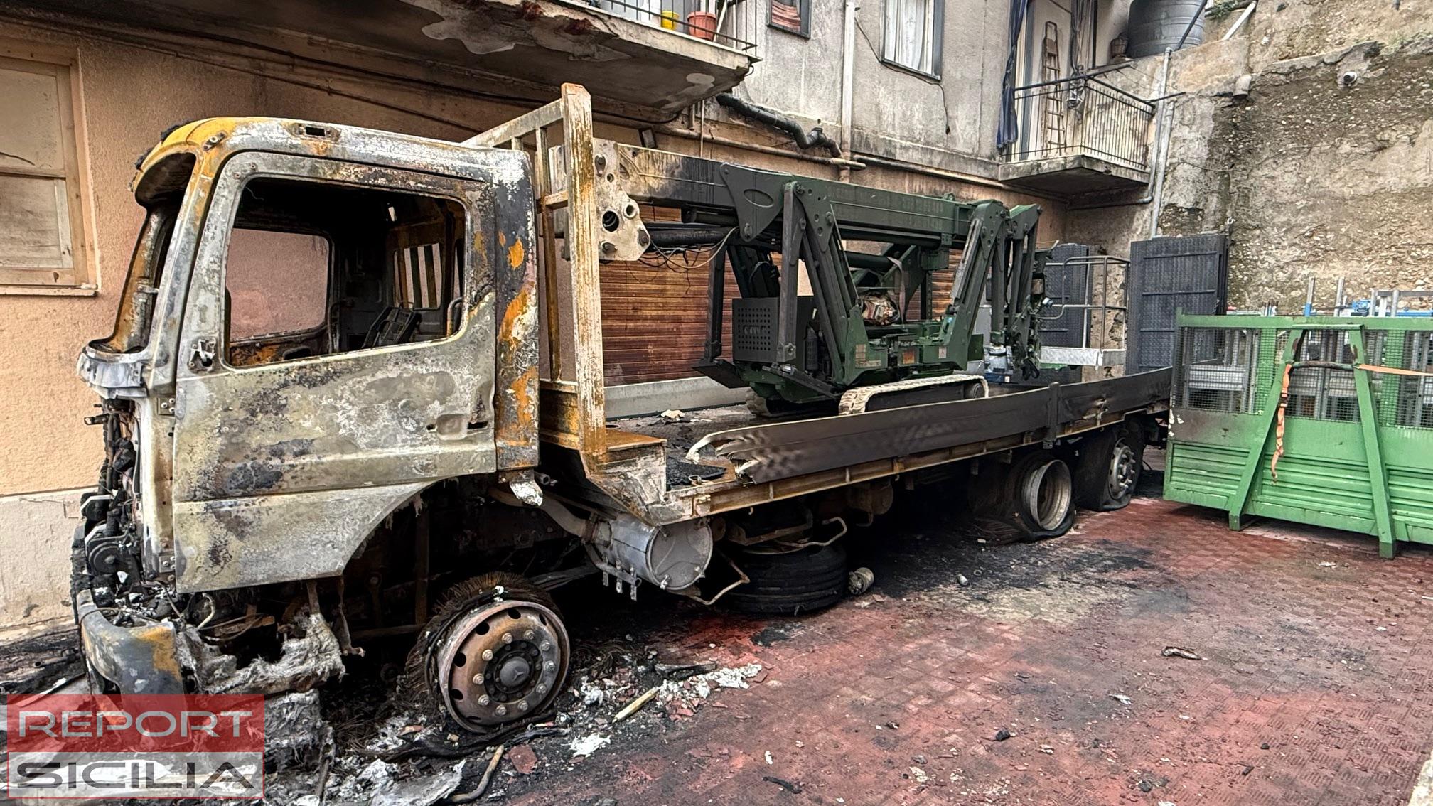 AGRIGENTO – Paura nel cuore del centro storico di Agrigento, in via Plebis Rea, dove alle 2:15 di questa notte un incendio improvviso ha avvolto un autocarro con gru cingolata e una Mercedes GLC.