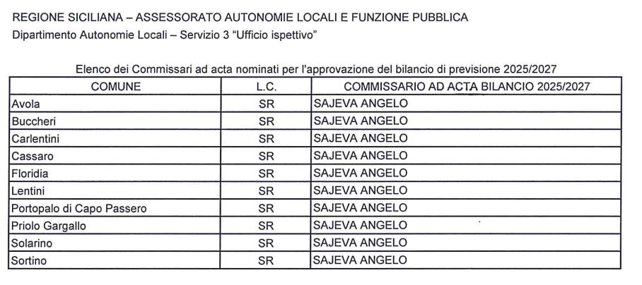 Angelo Sajeva è il commissario unico per i comuni della provincia di Siracusa, tra cui Avola, Lentini, Priolo Gargallo e Portopalo.