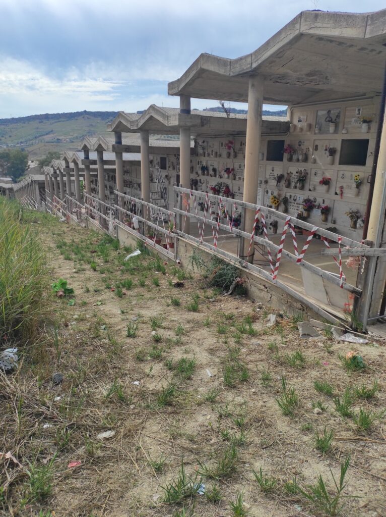 Il cimitero comunale, già da tempo in condizioni di degrado e parzialmente transennato per rischio crolli, è diventato il simbolo di un’amministrazione accusata di incuria e abbandono.
