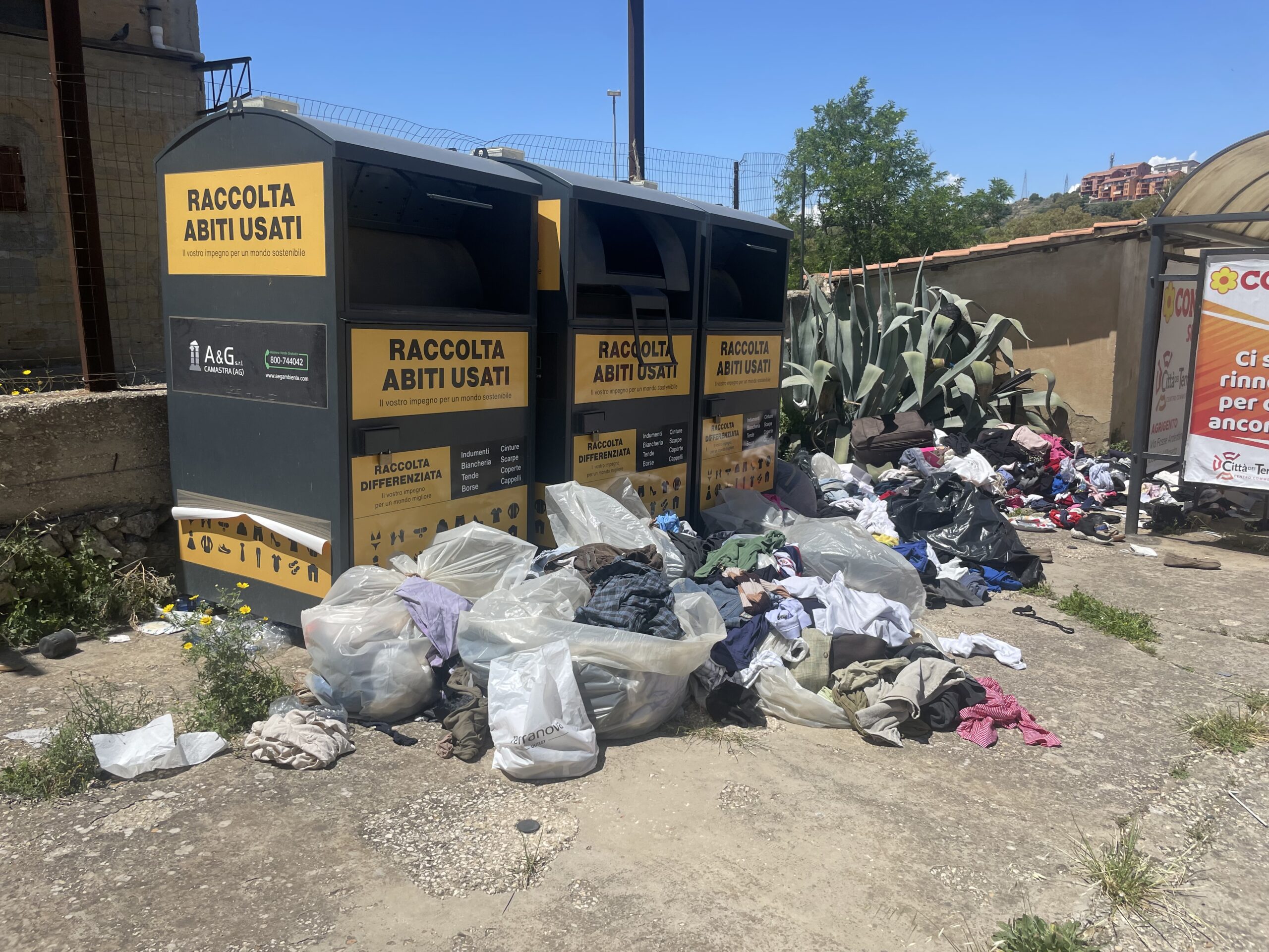 La situazione dei rifiuti ad Agrigento è drammatica. Il video diffuso oggi riassume chiaramente lo stato di degrado dei contenitori, ormai trasformati in discariche di quartiere. Già all’inizio del 2023, avevamo avvertito dell’inevitabile fallimento dell’installazione di 38 nuovi contenitori per abiti usati, accessori di abbigliamento e biancheria senza un’adeguata sorveglianza. Come previsto, questi contenitori sono diventati epicentri di sporcizia e degrado.
