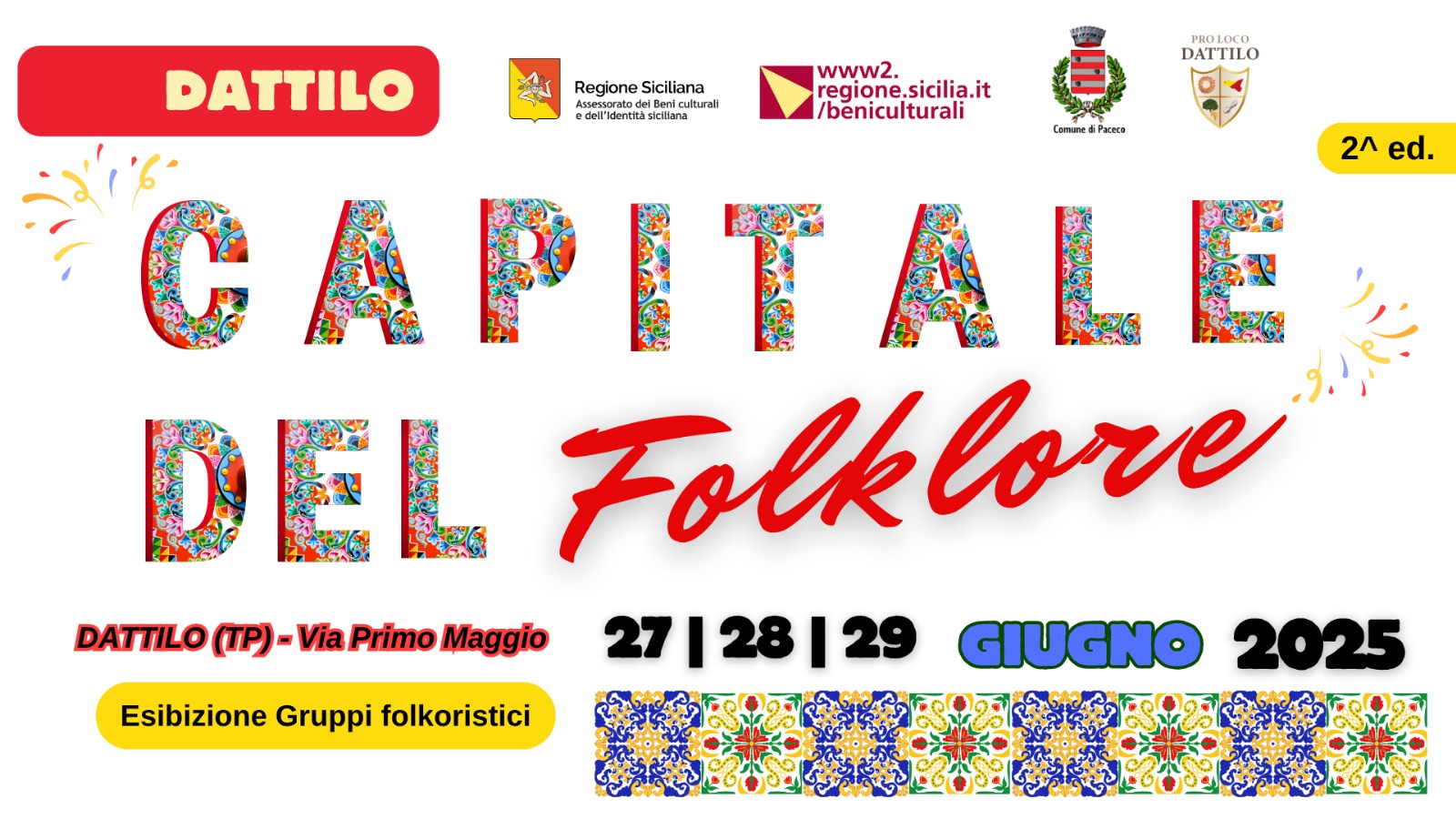 “Dattilo capitale del folklore – Tre giorni nell’anima siciliana” è il titolo della manifestazione che si terrà dal 27 al 29 giugno: un progetto promosso dall’assessorato regionale dei Beni Culturali e organizzato grazie all’impegno della Pro Loco Dattilo APS in occasione del “Dattilo Cannolo Fest”.