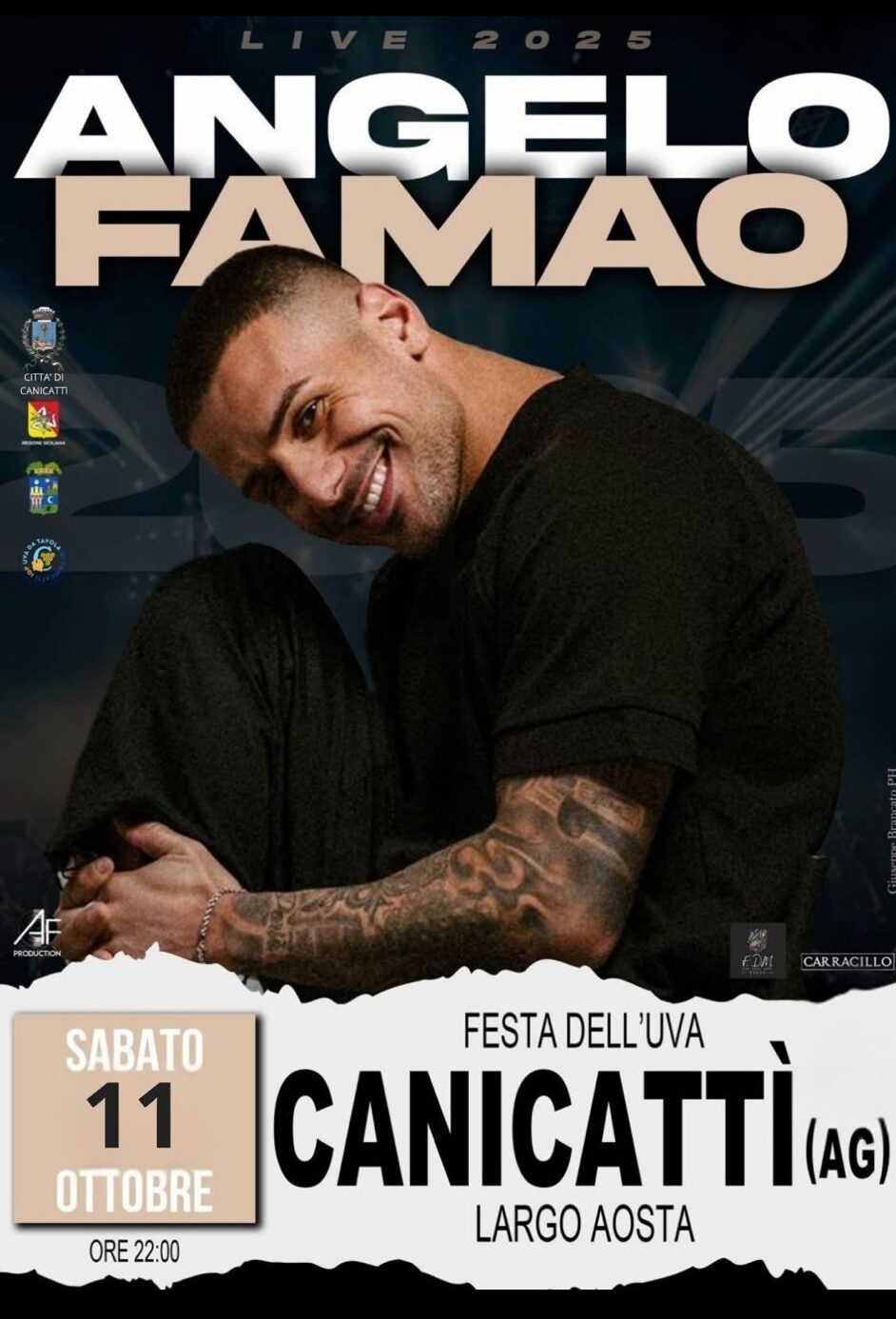 • Ore 22:00Concerto di Angelo Famao, una delle voci più amate del panorama musicale siciliano, pronto a infiammare Largo Aosta con i suoi successi