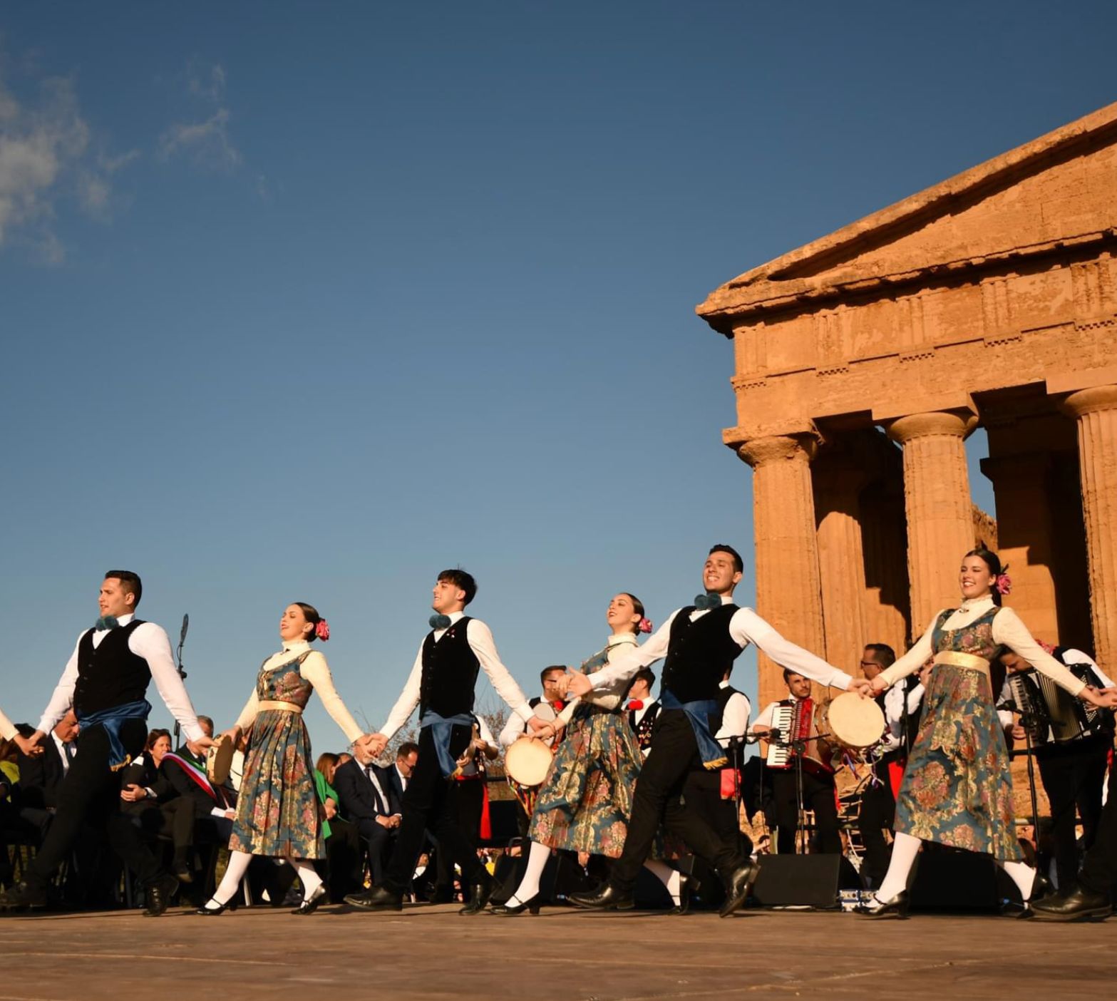Il gruppo si esibirà in una cornice straordinaria, davanti a un pubblico di milioni di spettatori tra presenze in loco e trasmissioni televisive, offrendo uno spaccato autentico della tradizione italiana. Simbolicamente, voleranno a Shanghai anche le bellezze del territorio agrigentino, prima tra tutte la Valle dei Templi, scenario d’eccezione delle esibizioni del gruppo, come nell’immagine che li ritrae durante una performance solenne e solare.