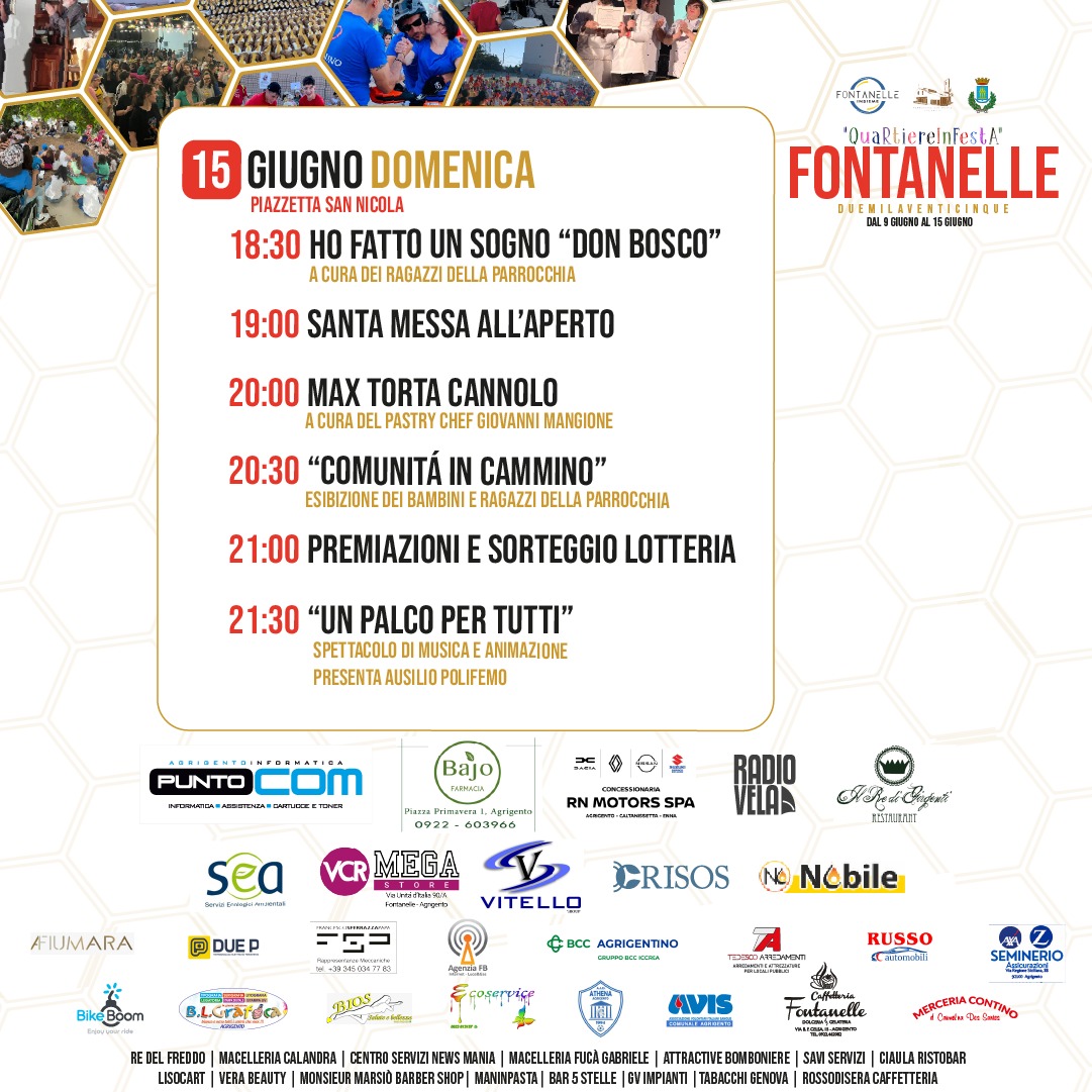 AGRIGENTO – 15 GIUGNO 2025 – Si concluderà oggi, con una giornata ricca di emozioni e appuntamenti per tutte le età, la settimana di celebrazioni al quartiere Fontanelle, che anche quest’anno ha dimostrato come l’autentica partecipazione popolare possa sopperire all’assenza totale di finanziamenti pubblici.