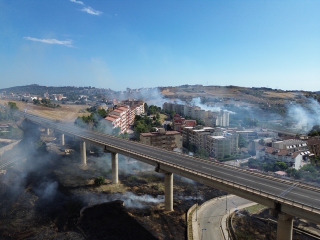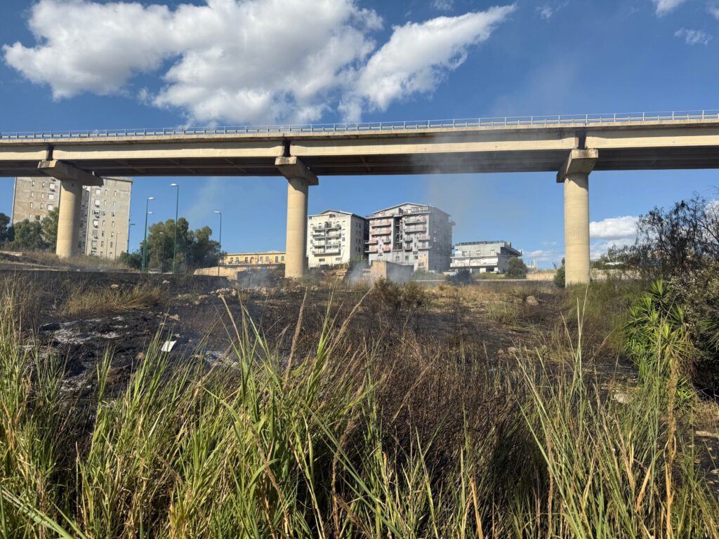 Le fiamme, alimentate da un forte vento, si sono sviluppate in almeno quattro distinti focolai, creando un fronte di fuoco ampio e imprevedibile. L’area interessata comprende via Alessio di Giovanni, dove alcune autovetture in sosta all’interno di una cooperativa sono andate completamente distrutte, mentre il vicino parco giochi per bambini è stato completamente invaso da fumo e cenere.