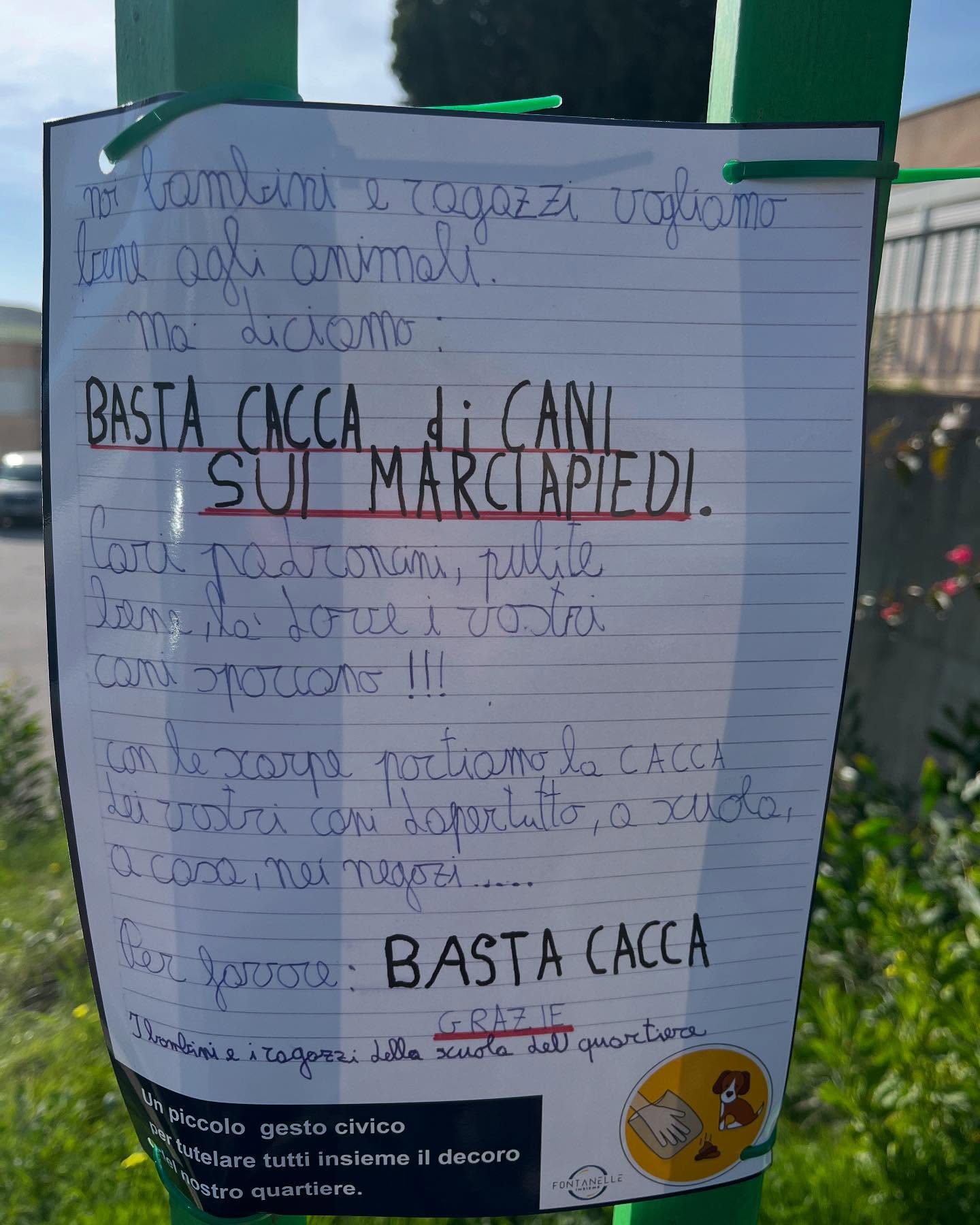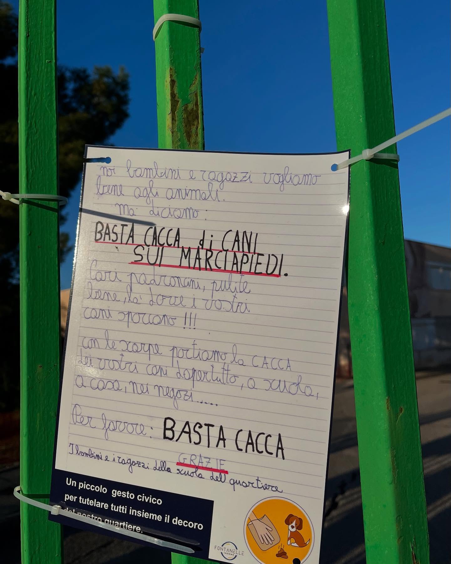 Il marciapiede è un simbolo dello spazio pubblico condiviso, e il messaggio dei bambini del quartiere Fontanelle è un invito a tutti i cittadini a riflettere sull’importanza di gesti semplici, come raccogliere i bisogni dei propri cani, per garantire la pulizia e la vivibilità del quartiere.