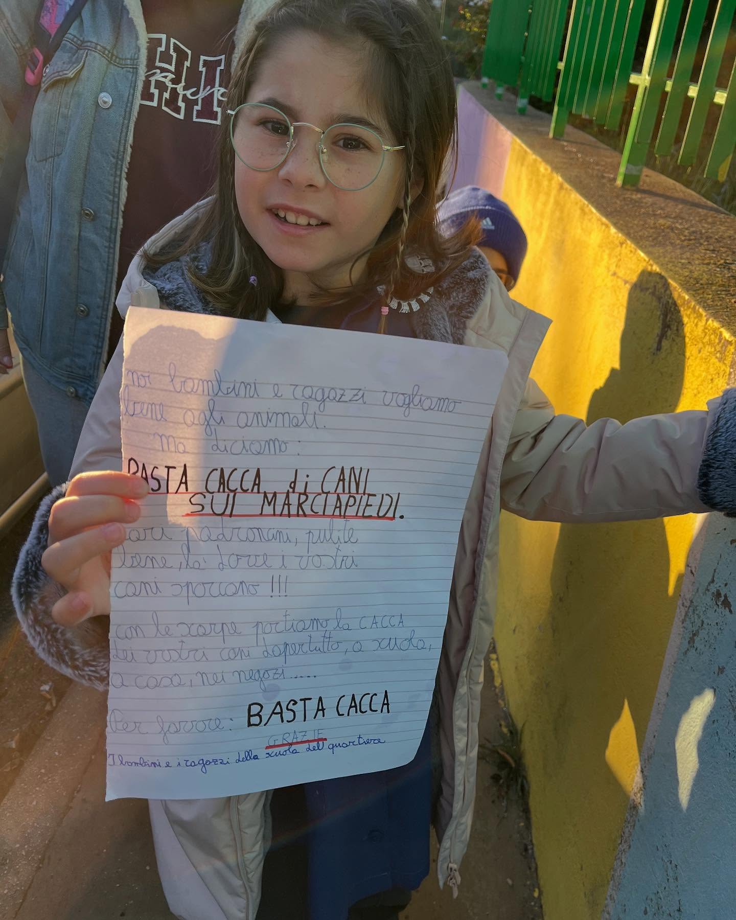 Le lettere, realizzate a mano dai bambini, sottolineano il desiderio di vivere in un ambiente pulito e rispettoso. “Non è colpa dei cani, ma degli adulti che non rispettano gli altri e lasciano i marciapiedi sporchi,” recita uno dei messaggi esposti lungo le recinzioni della scuola. I bambini chiedono semplicemente più attenzione e rispetto da parte dei proprietari di animali domestici, affinché raccolgano le deiezioni dei loro amici a quattro zampe.