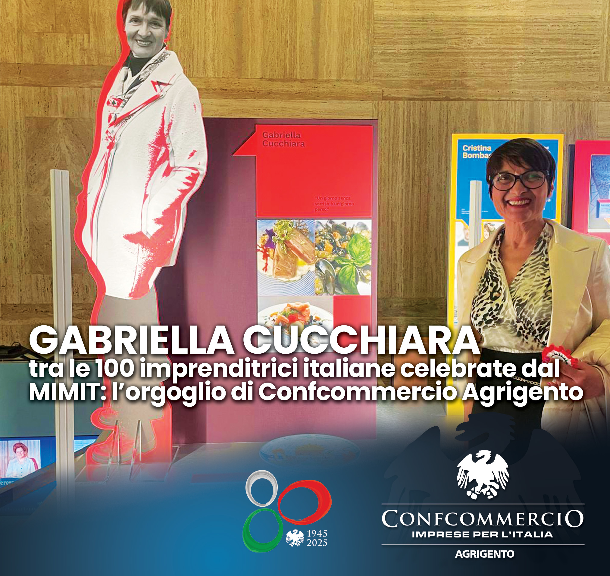“A nome di tutta Confcommercio Agrigento – dichiara Caruana – rivolgo le più vive congratulazioni a Gabriella Cucchiara per il prestigioso traguardo raggiunto. La sua presenza nella mostra organizzata dal Ministero è il giusto riconoscimento per un’imprenditrice che da anni si distingue per il suo impegno, la sua professionalità e la capacità di rappresentare con forza il ruolo delle donne nel mondo del lavoro, dell’impresa e della società. Gabriella è un esempio per tante giovani e una figura di riferimento per il nostro territorio.”