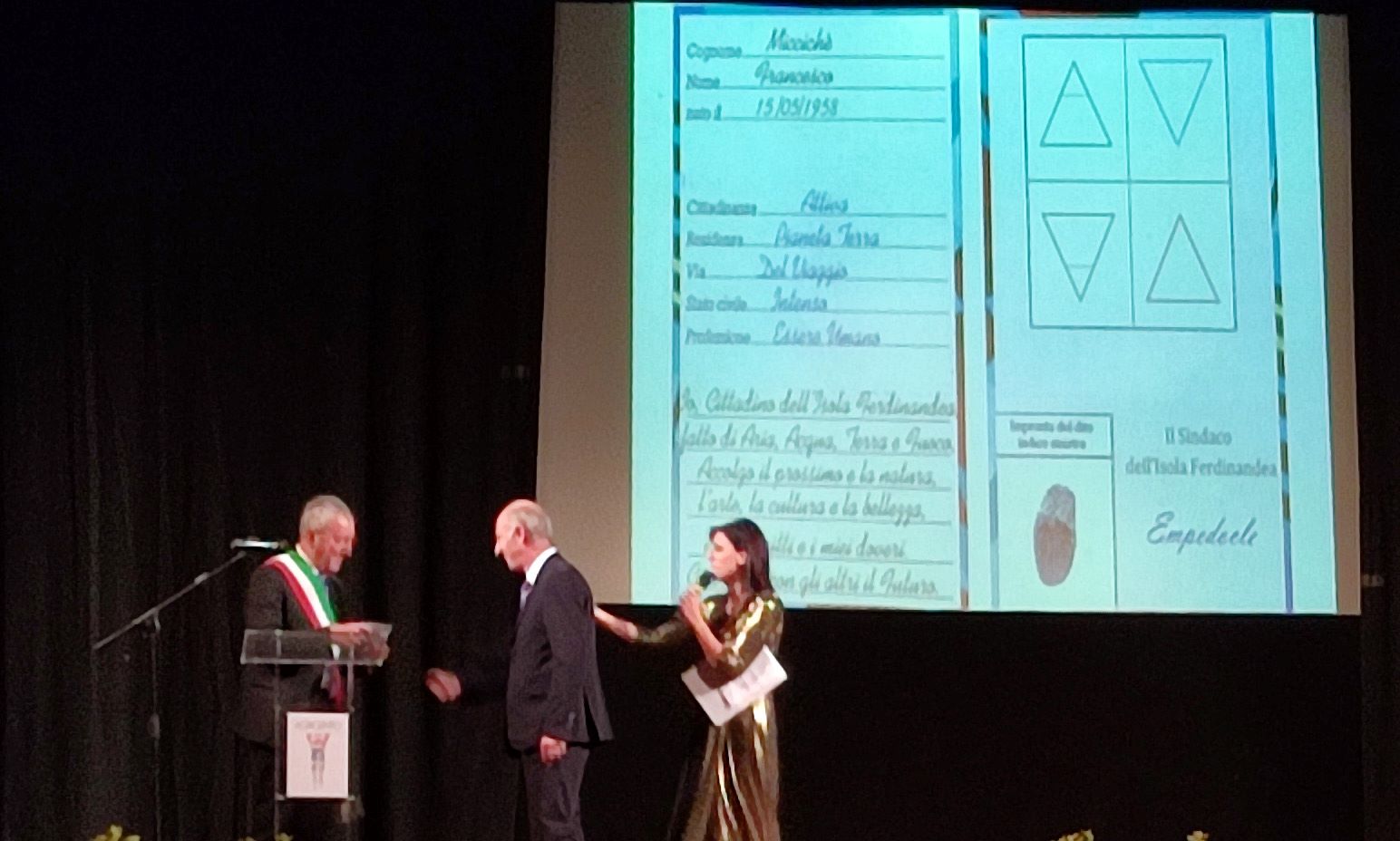 dell’isola Ferdinandea. La tessera di cittadinanza è stata mostrata sul grande