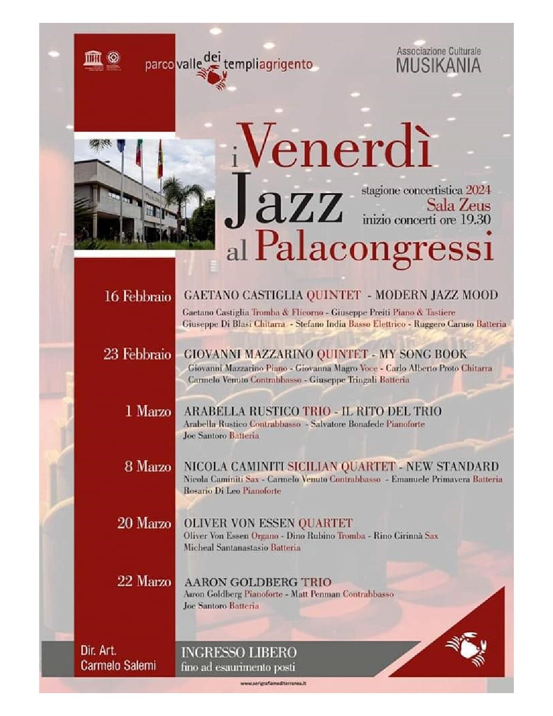 Il primo appuntamento sarà il 16 febbraio, protagonista: “Gaetano Castiglia Quintet”, con Gaetano Castiglia, tromba & flicorno; Giuseppe Preiti al piano; Giuseppe Di Blasi alla chitarra; Stefano India al basso elettrico e Ruggero Caruso alla batteria, in “Modern Jazz Mood”.