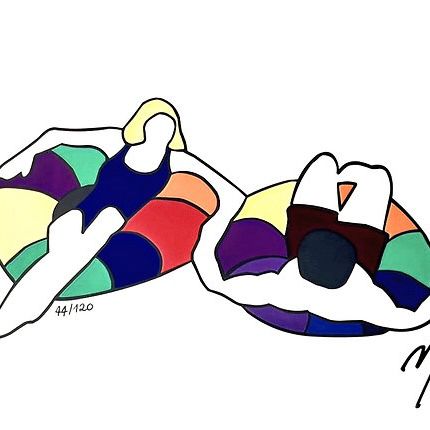 Nello specifico, le sue serigrafie su carta e PCV sono immediatamente riconoscibili per il linguaggio pop, ironico ed elegante, che trae ispirazione da icone della cultura contemporanea.