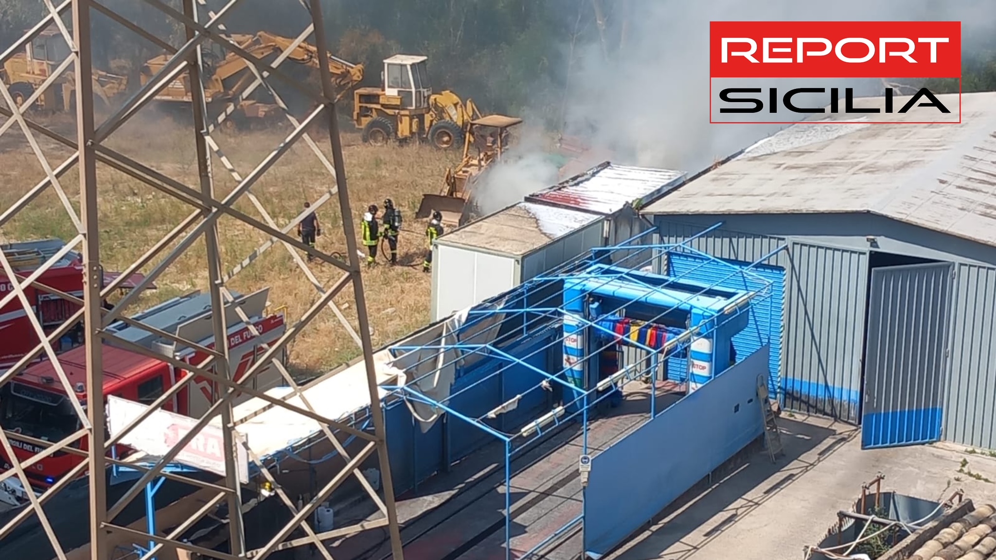Secondo le prime ricostruzioni, il rogo si è sviluppato in un’area dove erano presenti alcuni mezzi meccanici e materiali da lavoro, e le fiamme si sono propagate rapidamente, complice il caldo torrido del pomeriggio. Sul posto sono intervenute diverse squadre dei vigili del fuoco per circoscrivere le fiamme ed evitare che si propagassero verso i capannoni adiacenti e l’area industriale.