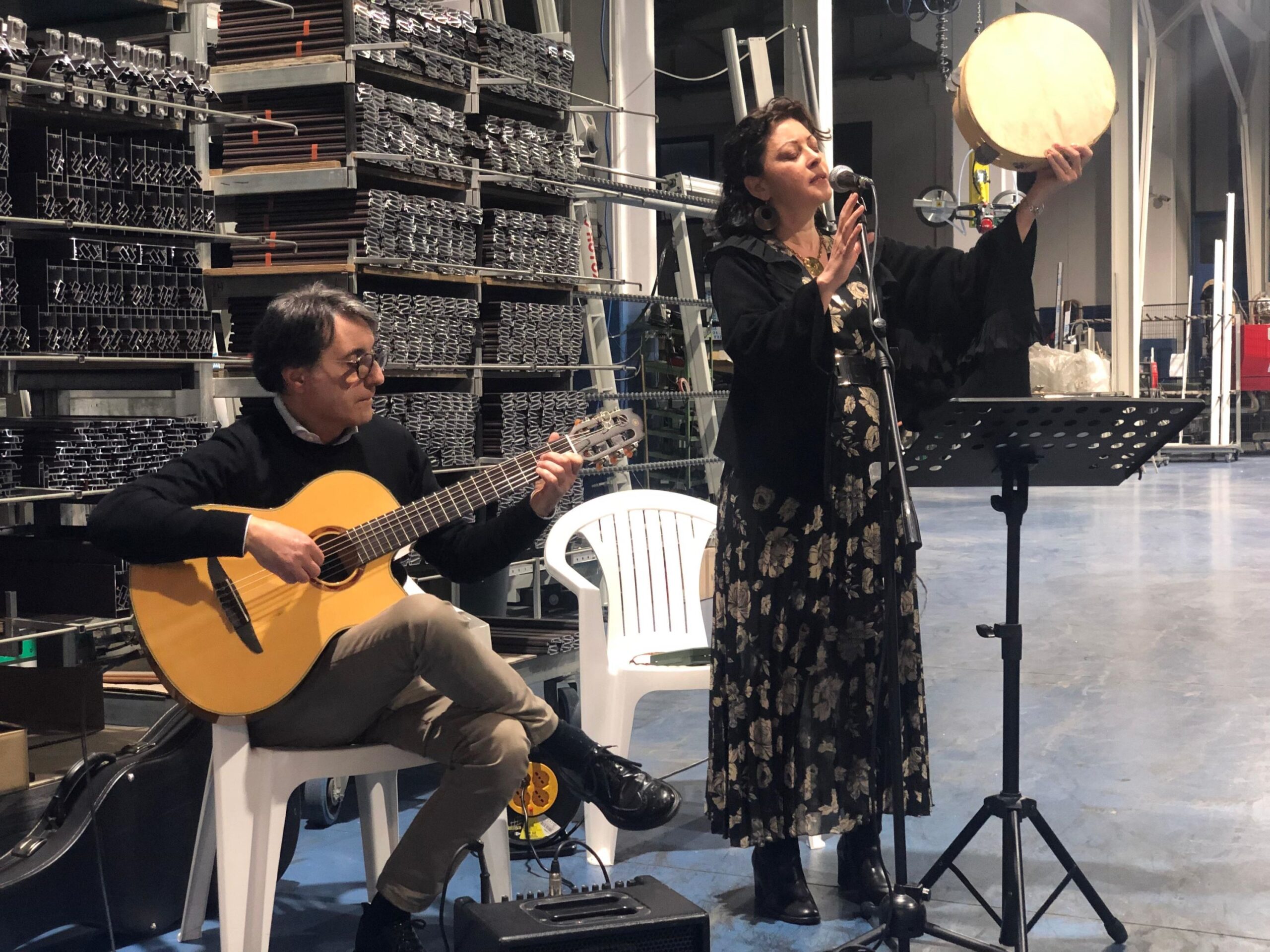 Cantare in una fabbrica, portandovi il tema del lavoro che riecheggia nei testi dei brani della tradizione popolare, è un’esperienza unica. Lo ha sperimentato la scrittrice e cantautrice nissena Giovanna Caruana (accompagnata alla chitarra da Mario Ferrara) che nella zona industriale di San Cataldo presso la “Bruno infissi” si è ritrovata in un ambiente di lavoro che è anche ambiente di vita, di valori, di protezione, di sentimenti alti. I temi affrontati sono stati di grande spessore ed emotivamente forti e si sono riferite alle morti sul lavoro diventate ormai colpevolmente inarrestabili in questa nostra Italia. L’evento è stato promosso dall’Azione Cattolica provinciale, sempre attenta e sensibile a questi temi, e al proprietario dell’azienda “Bruno Infissi” che ha ospitato la doverosa testimonianza.
