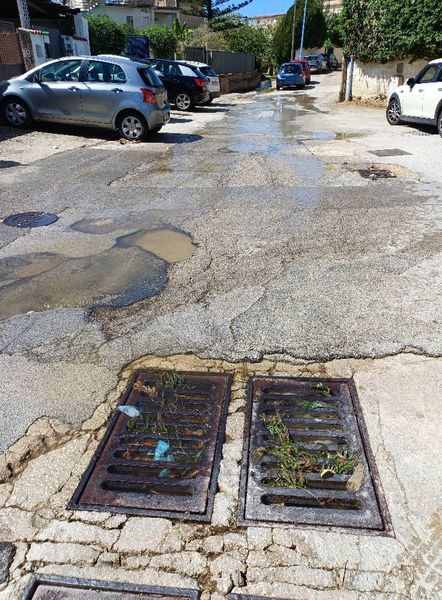Per quanto riguarda la fuoriuscita di acqua, abbiamo effettuato degli accertamenti e delle ricerche assumendo notizie contattando anche operatori aica della zona, siamo venuti a conscenza che : Non essendoci nessun servizio idrico nella zona e nelle zone limitrofe, Trattasi di acque superficiali che defluiscono dal vicino Vallone Donna Cristina, che non si incanalano in maniera adeguata nelle condotte Comunali di acque bianche tra l’incrocio di Via delle Palme e via dei Giacinti, situazione atavica che persiste da circa 50 anni, con Acqua che dovrebbe veicolare in condotte apposite per poi sfociare tramite il canalone apposito davanti Villa Pertini