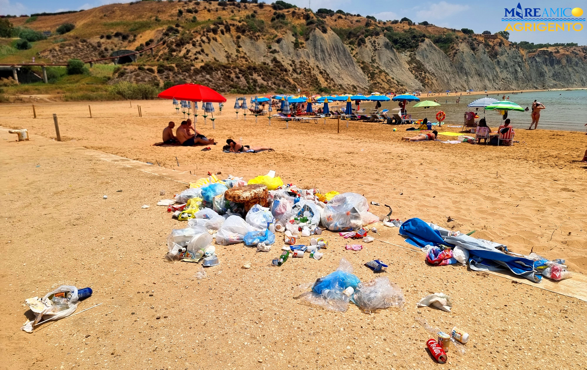 Per fare pulire le spiagge di San Leone ci sono voluti articoli, video, post social di improvvisati cronisti da spiaggia. Oggi la situazione è molto migliorata anche se i subumani dilagano e i cestini scarseggiano. Se ad Agrigento la situazione è tornata tutto sommato decente, c’è un luogo di confine dal quale Mareamico dirama immagini forti, fortissime. Le immagini dei mucchi di pattume abbandonato sulla spiaggia ai piedi dei luoghi Pirandelliani. Tracce del passaggio di orde di barbari provenienti da ogni dove che, non avendo cestini a disposizione nei dintorni, ma soprattutto capacità di vivere in un contesto civile, hanno lasciato tutto sul luogo in cui hanno consumato. Uno scempio dell’ambiente e dell’immagine turistica della zona. Trattandosi di una zona – come detto – di confine tra Agrigento e Porto Empedocle, viene lecito chiedersi di chi sia la competenza della pulizia.