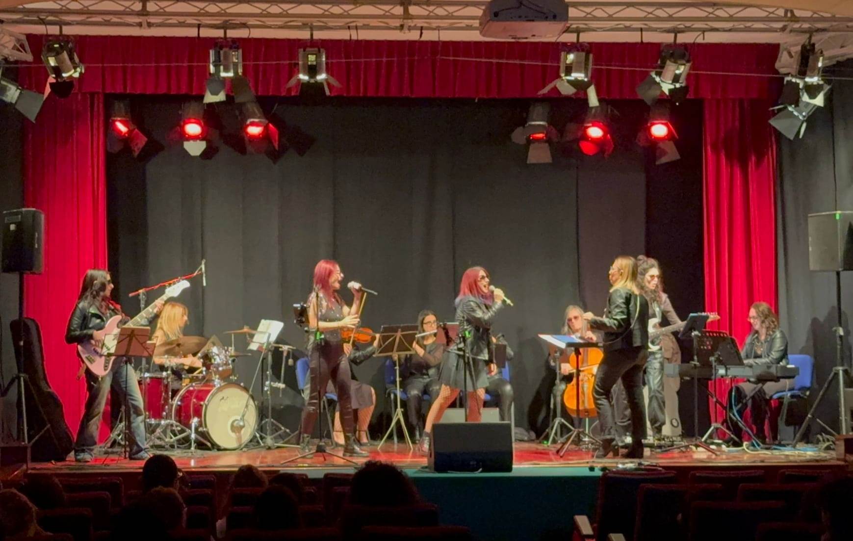 La formazione si è esibita in alcuni brani del concerto “Regine del Rock”, già portato in scena in diverse location d’Italia, un viaggio travolgente attraverso alcuni dei brani del genere musicale più iconici di sempre.