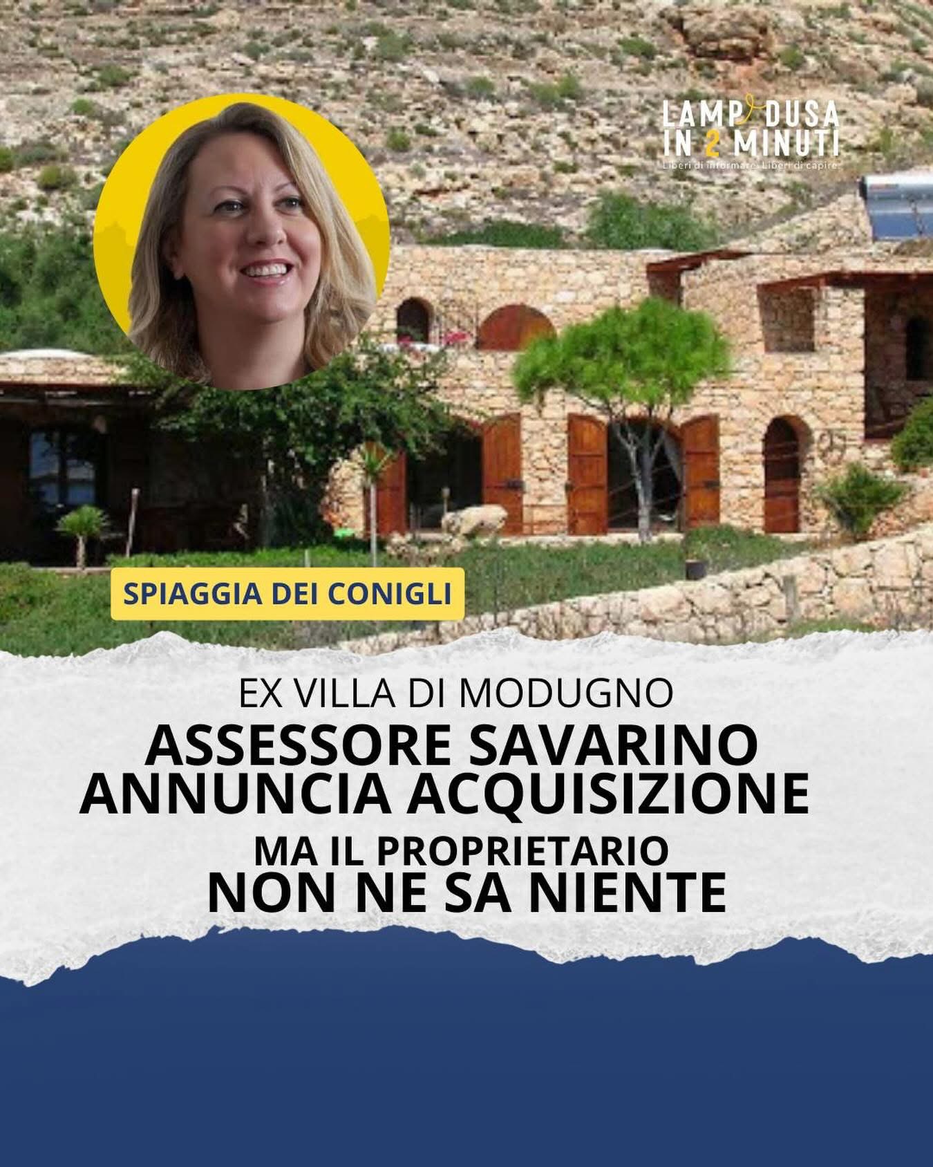 Potrebbero esserci delle importanti novità sulla vicenda, che riguarda, appunto, la annunciata acquisizione dell’Assessore Savarino proprio per quella che è la villa certamente più famosa e in vista di Lampedusa: la casa che fu e dove morì guardando il mare dell’isola dei conigli, Domenico Modugno.