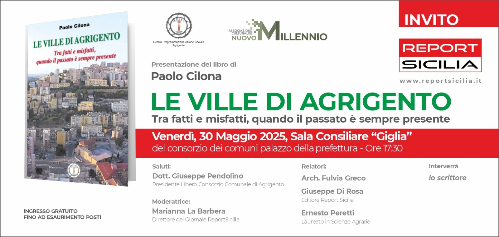 L’evento è promosso dall’Associazione Culturale “Nuovo Millennio”, editrice del giornale online Report Sicilia, e si propone come un importante momento di riflessione pubblica sui fatti che hanno segnato lo sviluppo – e spesso la deturpazione – del patrimonio urbano e paesaggistico della città dei templi.