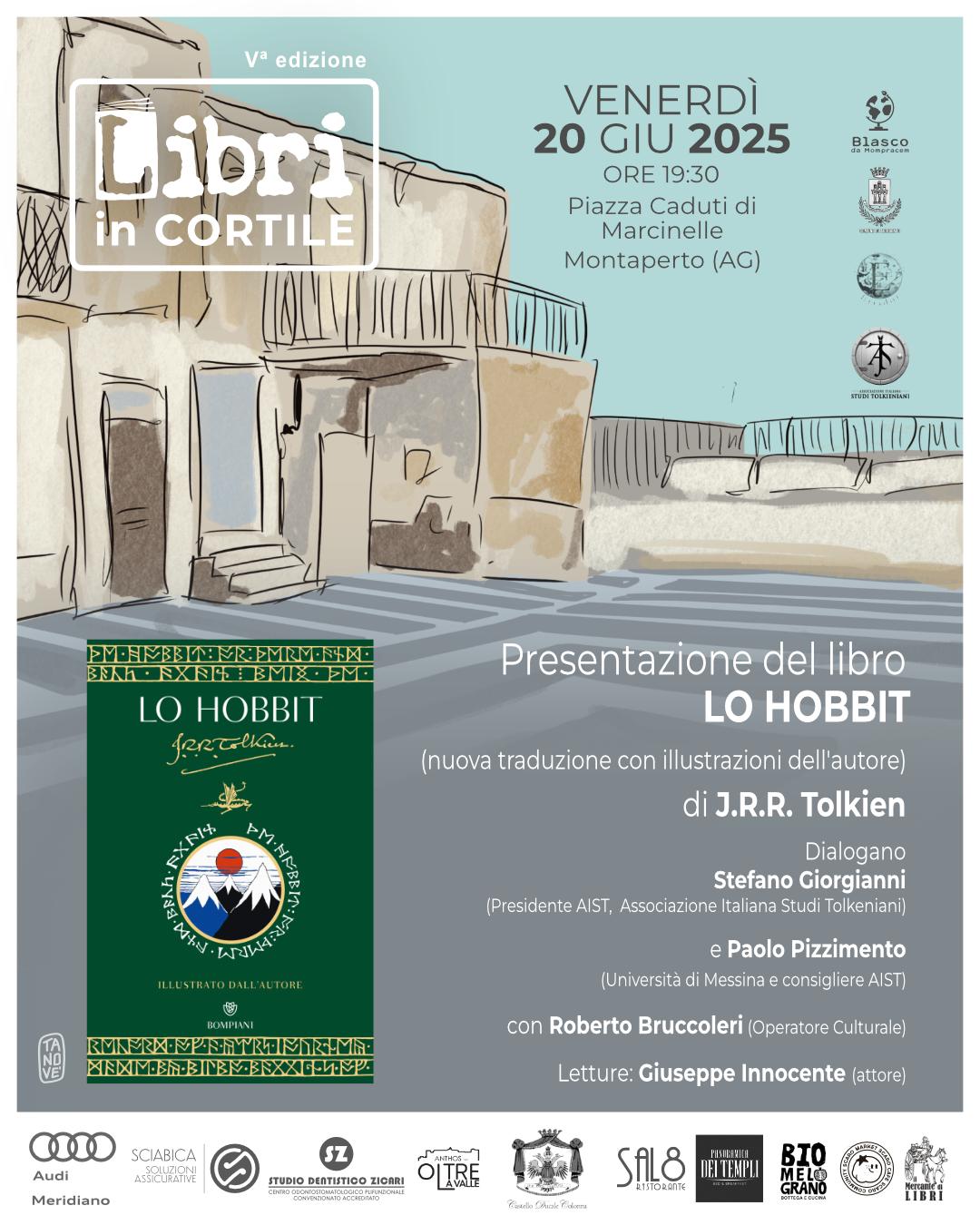 AGRIGENTO – Sarà un viaggio tra elfi, nani e leggende quello che attende gli appassionati di J.R.R. Tolkien venerdì 20 giugno 2025 nella suggestiva Piazza Caduti di Marcinelle a Montaperto, borgata agrigentina che ospiterà la quinta edizione di Libri in Cortile, rassegna culturale ideata da Blasco da Mompracem.