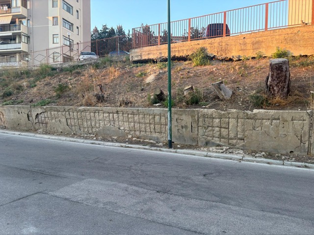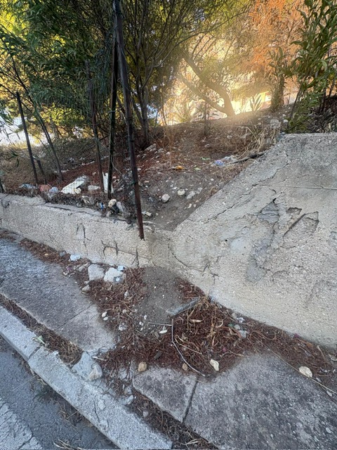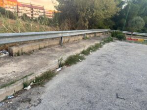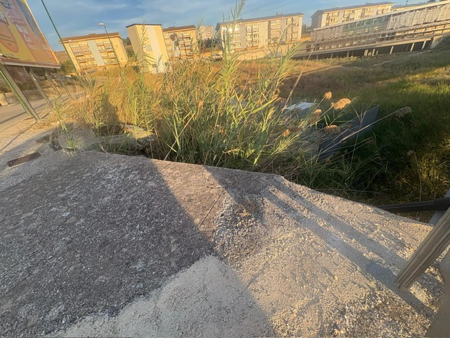 Muri di contenimento fatiscenti, con crepe e pezzi di cemento staccati, a rischio sicurezza.