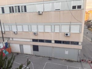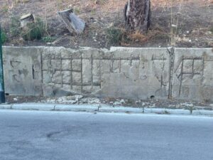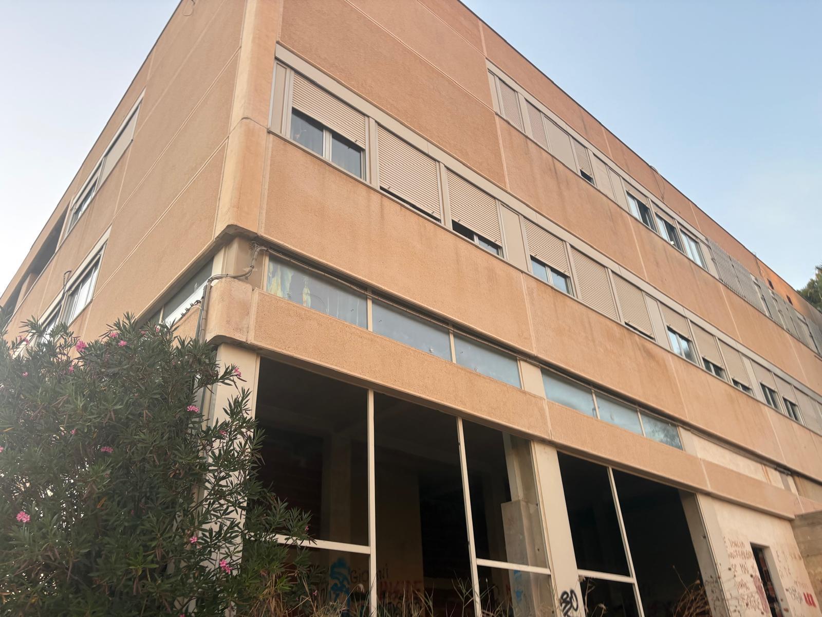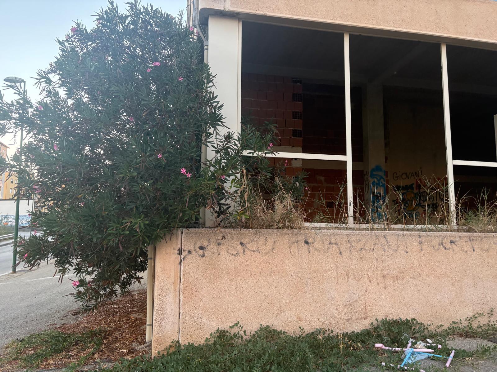 Un edificio pubblico abbandonato, ridotto a rudere vandalizzato, simbolo dell’incuria istituzionale.