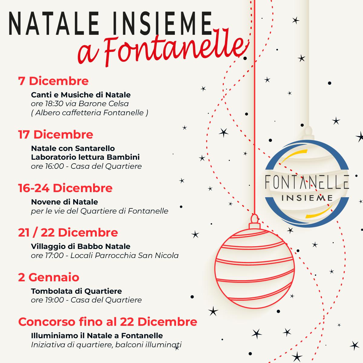 - Fino al 22 dicembre: Concorso “Illuminiamo il Natale a Fontanelle”, un’iniziativa che invita i residenti ad abbellire i balconi del quartiere con luci natalizie.