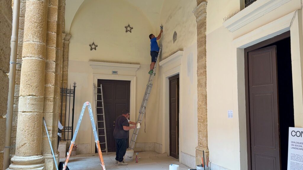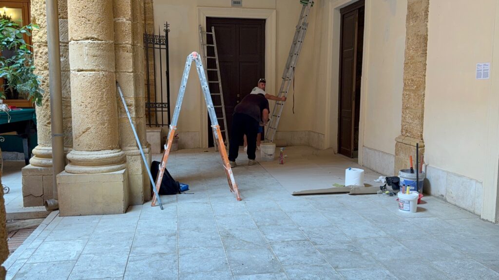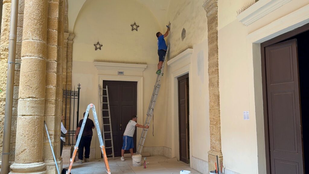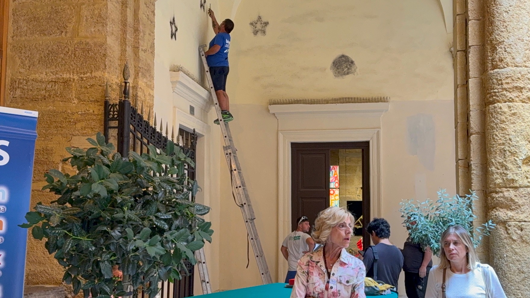 Gli addetti stanno cercando di rimediare ai danni causati all’edificio monumentale vincolato, riempiendo i fori lasciati dai chiodi e rimuovendo i segni delle bruciature. Una corsa ai ripari che certifica ancora una volta la fondatezza delle nostre denunce: il patrimonio storico e architettonico della città continua a essere violato con superficialità, salvo poi intervenire solo quando la stampa libera accende i riflettori.