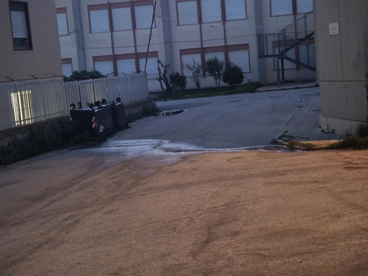 A peggiorare il quadro, una seconda perdita di acque nere si è verificata a circa 20 metri dalla scuola media Anna Frank, con la fuoriuscita di liquami che si estendono lungo via Matteo Cimarra, interessando l’area circostante e aggravando una situazione già critica.