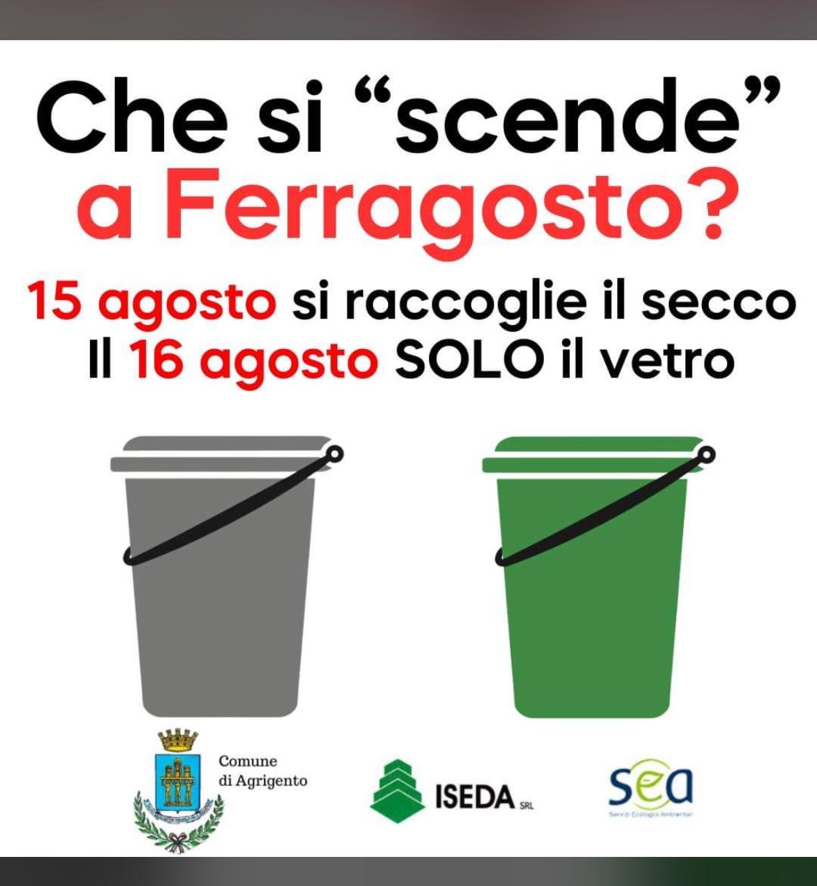 Importanti novità per il conferimento dei rifiuti differenziati nel prossimo ponte legato al Ferragosto ad Agrigento