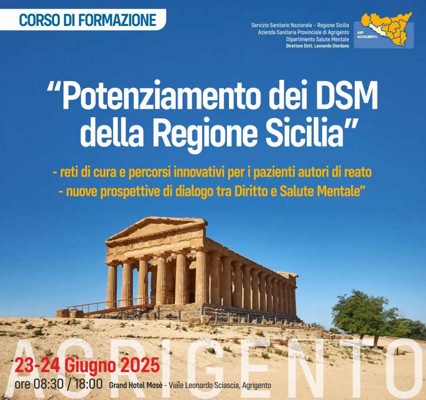 “Potenziamento dei DSM della Regione Sicilia – Reti di cura e percorsi innovativi per i pazienti autori di reato – Nuove prospettive di dialogo tra Diritto e Salute Mentale”.