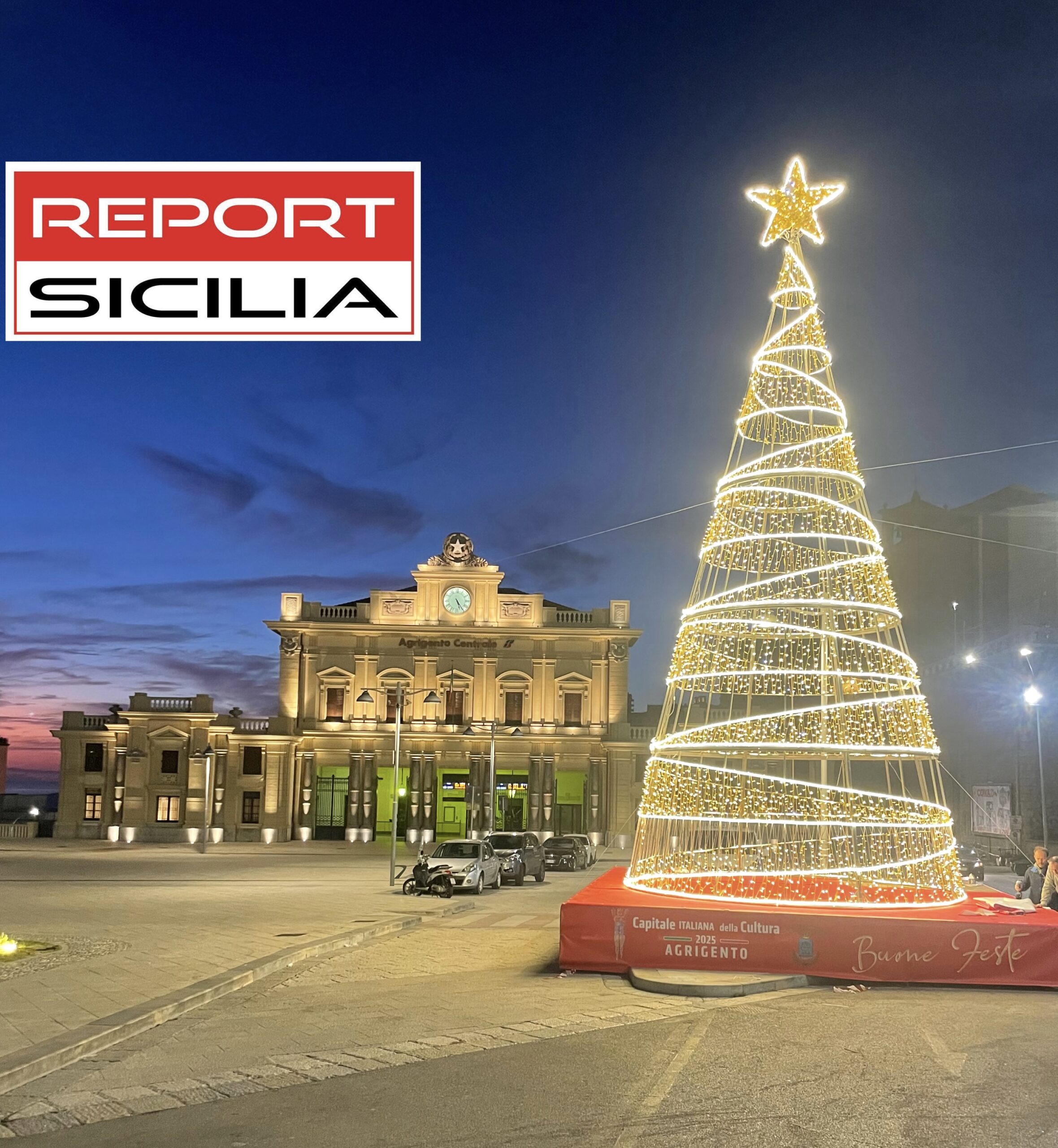 L’albero di Natale di piazza Stazione ad Agrigento, una struttura conica in ferro zincato alta 13 metri, decorata in bianco e oro e illuminata da 10.000 luci micro LED, è ormai pronto. Le prove generali di questa sera, hanno mostrato la bellezza di questa installazione, che sembra destinata a restituire dignità e spirito natalizio alla città. Tuttavia, le ombre del recente passato continuano a offuscare l’atmosfera di festa.
