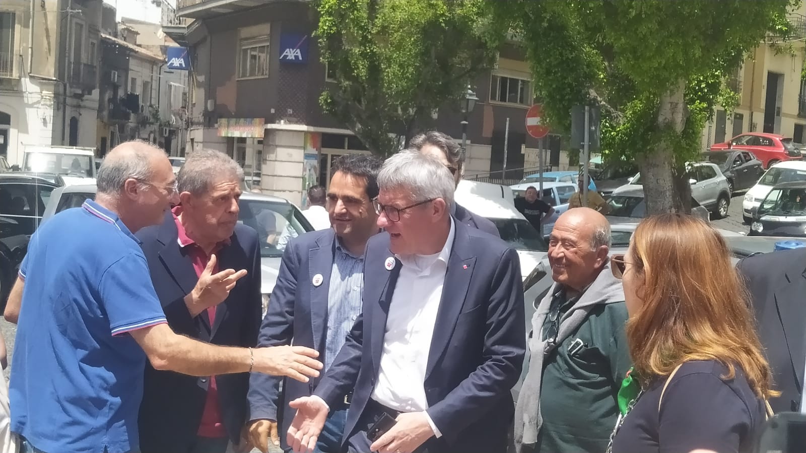 Il referendum abrogativo su lavoro e cittadinanza entra nel vivo e nella mattina del 20 maggio il segretario generale della CGIL, Maurizio Landini, è intervenuto in piazza Umberto a Paternò per parlare con la stampa delle ragioni del sì riguardanti lo stop ai licenziamenti illegittimi, le maggiori tutele nelle piccole imprese, la lotta al lavoro precario, una maggiore sicurezza sul lavoro e l’acquisizione della cittadinanza italiana.