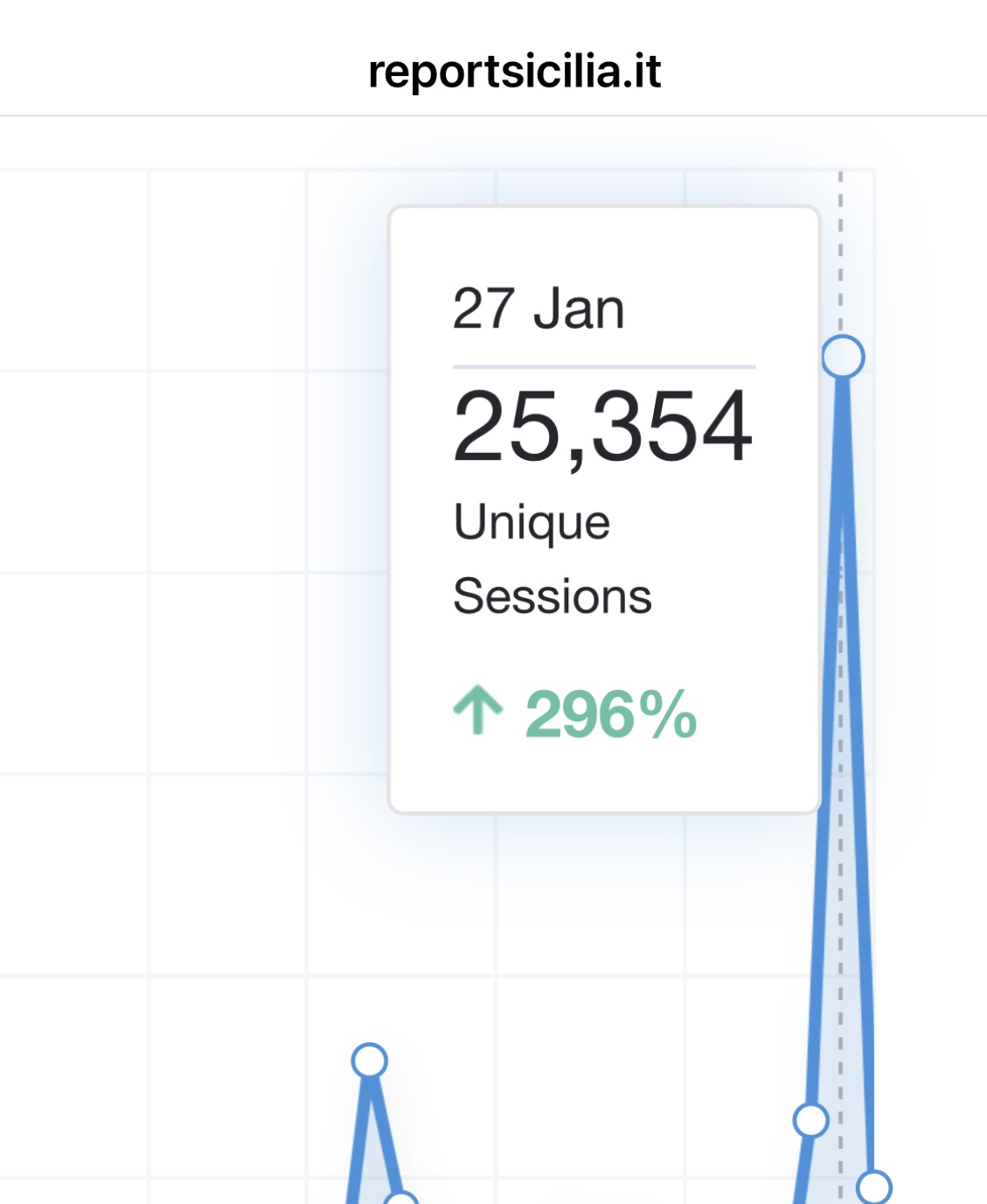 I dati tecnici confermano che il 27 gennaio 2025, il nostro portale ha registrato ben 25.354 sessioni uniche, con un aumento del 296% rispetto ai valori abituali. Un risultato straordinario, che premia il nostro impegno quotidiano nel raccontare Agrigento e la Sicilia senza filtri, senza compromessi, senza censure.