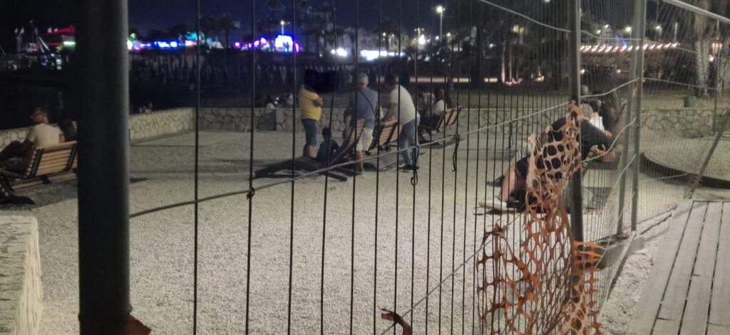 Le immagini che pubblichiamo oggi arrivano da una normale serata estiva a San Leone. Decine di persone, tra famiglie, anziani e giovani, hanno superato le transenne del nuovo solarium, occupando panchine e sedute ancora dentro un’area ufficialmente classificata come “cantiere in corso”.