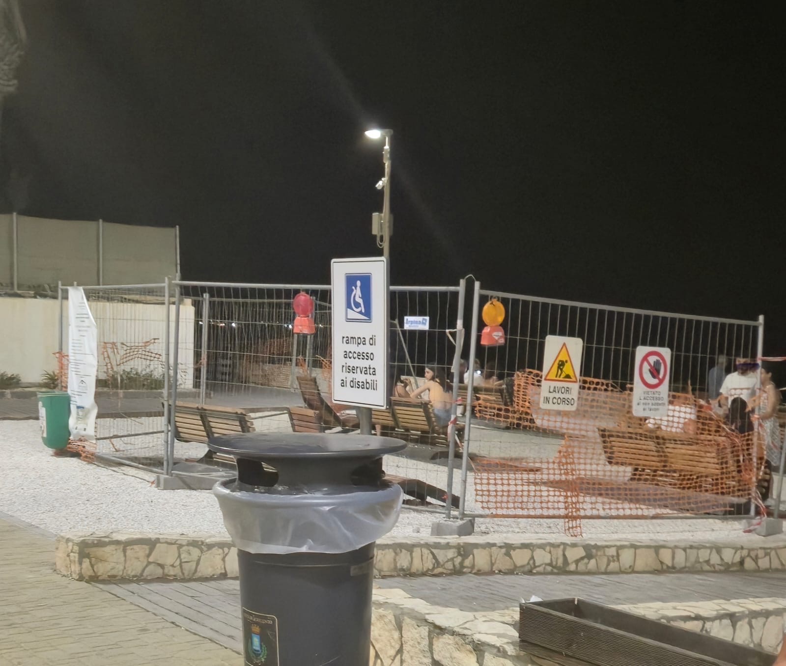 Le immagini che pubblichiamo oggi arrivano da una normale serata estiva a San Leone. Decine di persone, tra famiglie, anziani e giovani, hanno superato le transenne del nuovo solarium, occupando panchine e sedute ancora dentro un’area ufficialmente classificata come “cantiere in corso”.