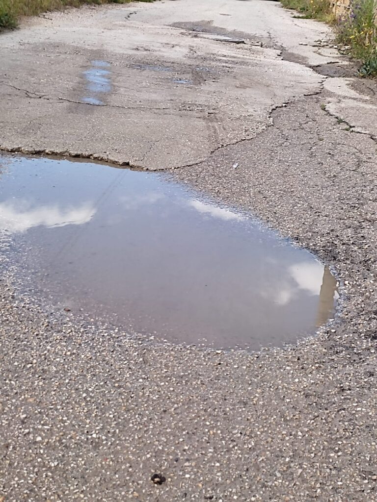Le immagini scattate dai residenti documentano l’abbandono totale: buche profonde, manto stradale disgregato, tombini rialzati, pozzanghere che restano anche giorni dopo la pioggia. A tutto questo si aggiunge la completa assenza di illuminazione pubblica: al calar del sole, la strada diventa un luogo pericoloso.