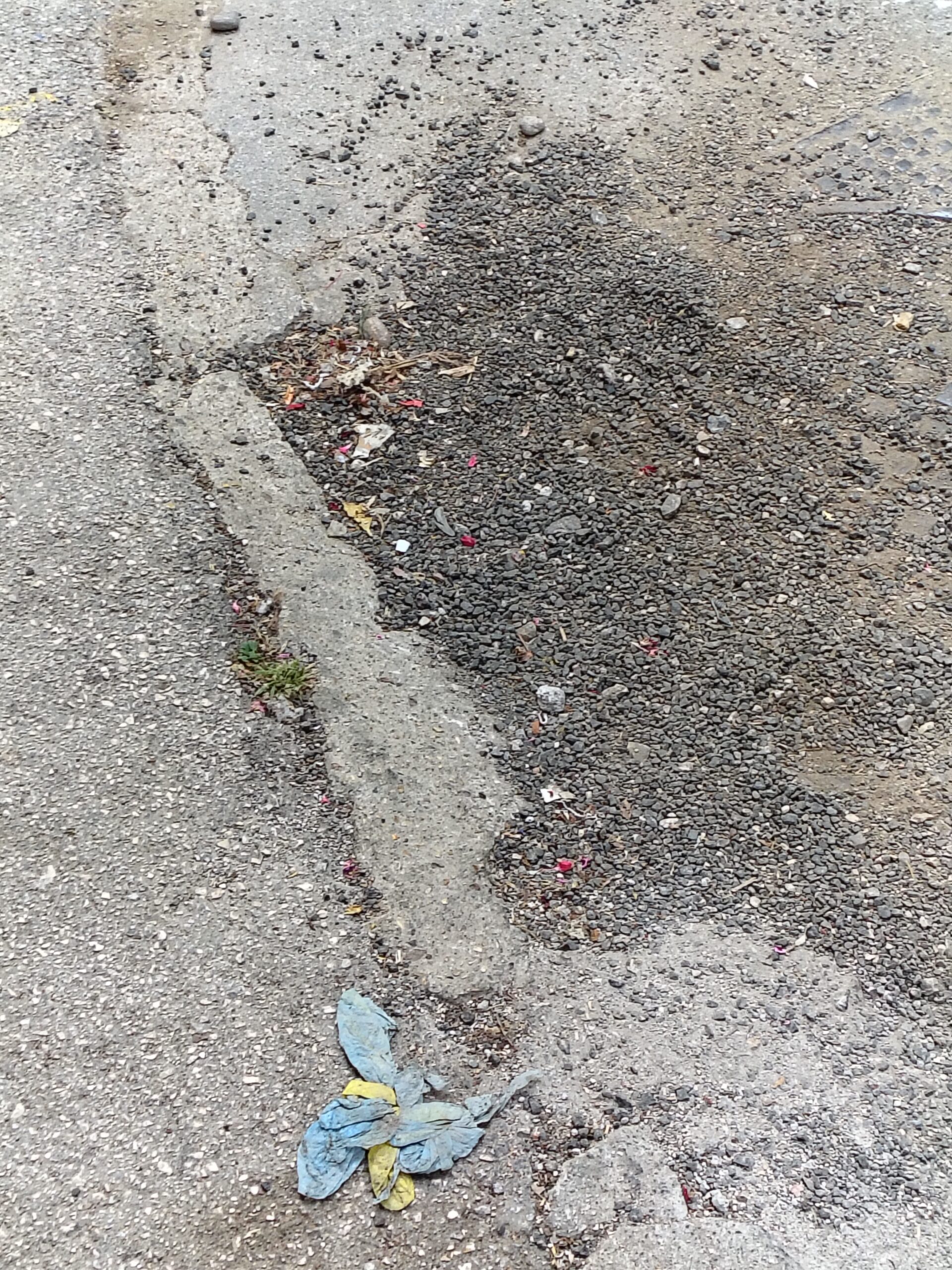 A scrivere è Anna Maria Montana Lampo, residente nella zona, che documenta con una serie di fotografie l’avanzato stato di degrado del manto stradale, con lesioni profonde, sprofondamenti evidenti e una progressiva erosione degli strati sottostanti l’asfalto.