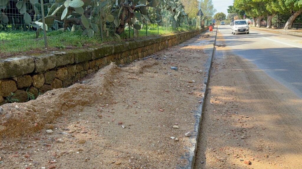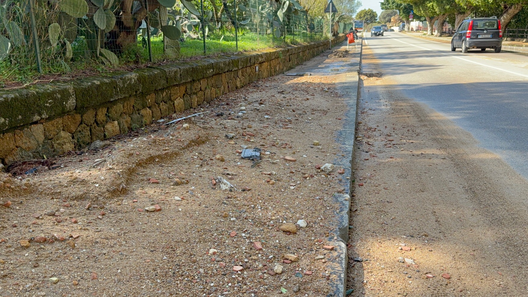 Quella che dovrebbe essere una delle vie più curate e suggestive della città, percorsa ogni giorno da residenti e turisti diretti verso la Valle dei Templi, si trasforma invece in un percorso a ostacoli.