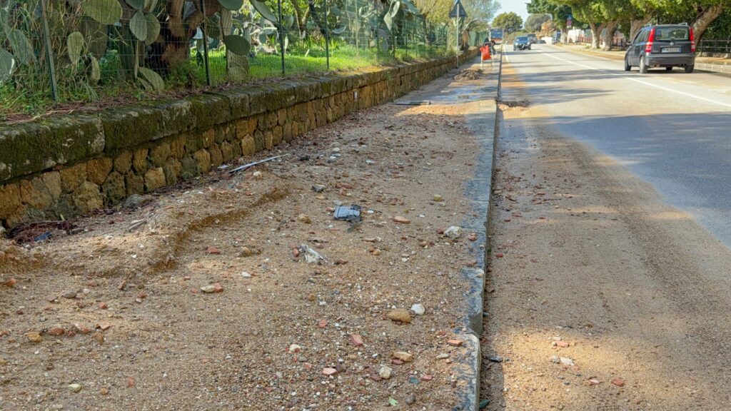 Eppure, la strada era stata “ripulita” pochi giorni fa. Peccato che, come spesso accade ad Agrigento, i lavori si siano fermati a metà: il materiale rimosso non è stato raccolto né smaltito, ma semplicemente accatastato sul ciglio della strada.