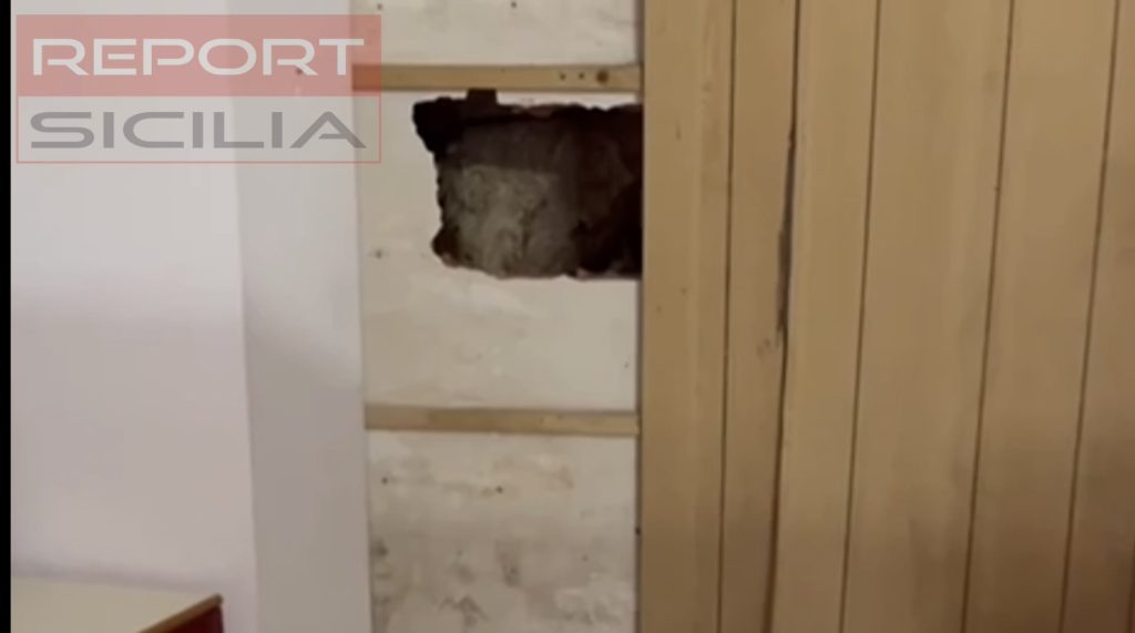 Le immagini e i video raccolti da Report Sicilia mostrano chiaramente la perdita: un flusso continuo che si incunea all’interno dei muri portanti, con infiltrazioni persistenti che, nel tempo, possono compromettere la stabilità della struttura.