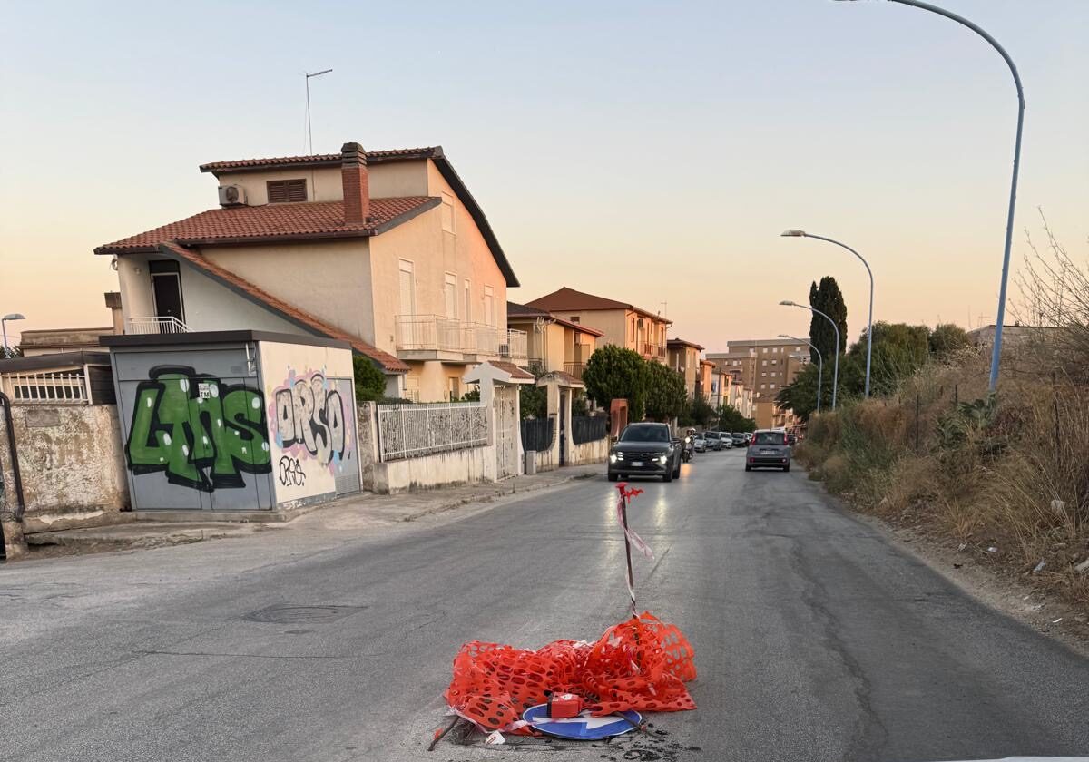 Agrigento – Una scena al limite dell’assurdo quella che si presenta da giorni lungo il centralissimo Viale dei Giardini, a San Leone. Una buca profonda è stata semplicemente coperta con una rete arancione da cantiere, un segnale divelto e nessuna segnalazione preventiva. Né cartelli, né luci lampeggianti, né alcuna misura notturna che possa segnalare il pericolo ai mezzi in transito.