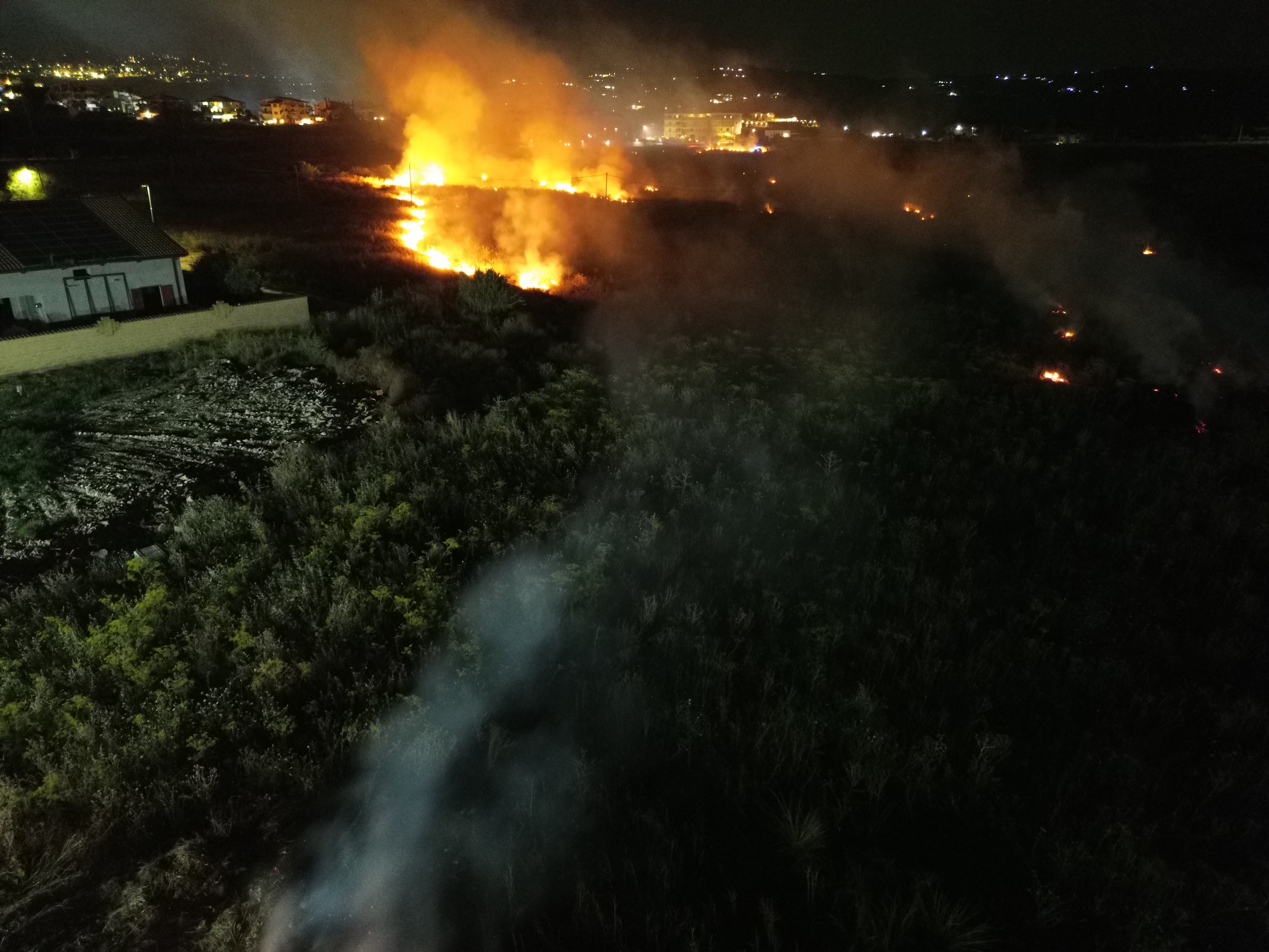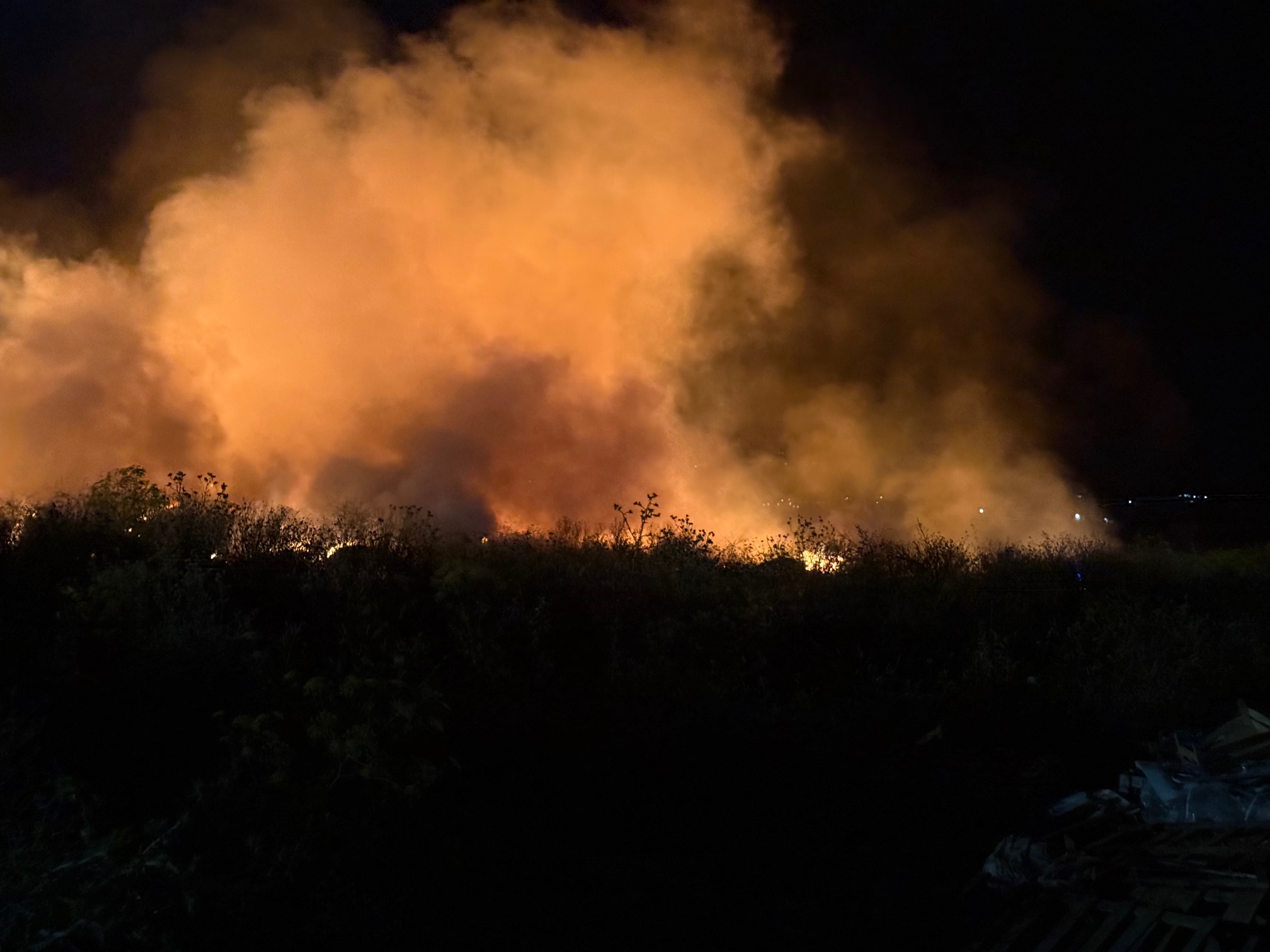 La nostra presenza sul posto ci ha permesso di osservare da vicino l’origine dell’incendio, che sembrerebbe essere stato appiccato intenzionalmente nei pressi del mercato ortofrutticolo. Una zona da tempo segnalata per l’incuria e l’abbandono, mai bonificata, che in estate si trasforma in una bomba ecologica a cielo aperto.